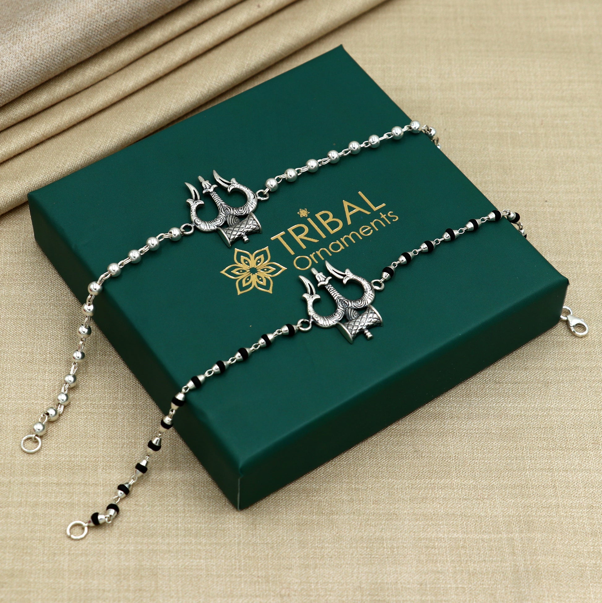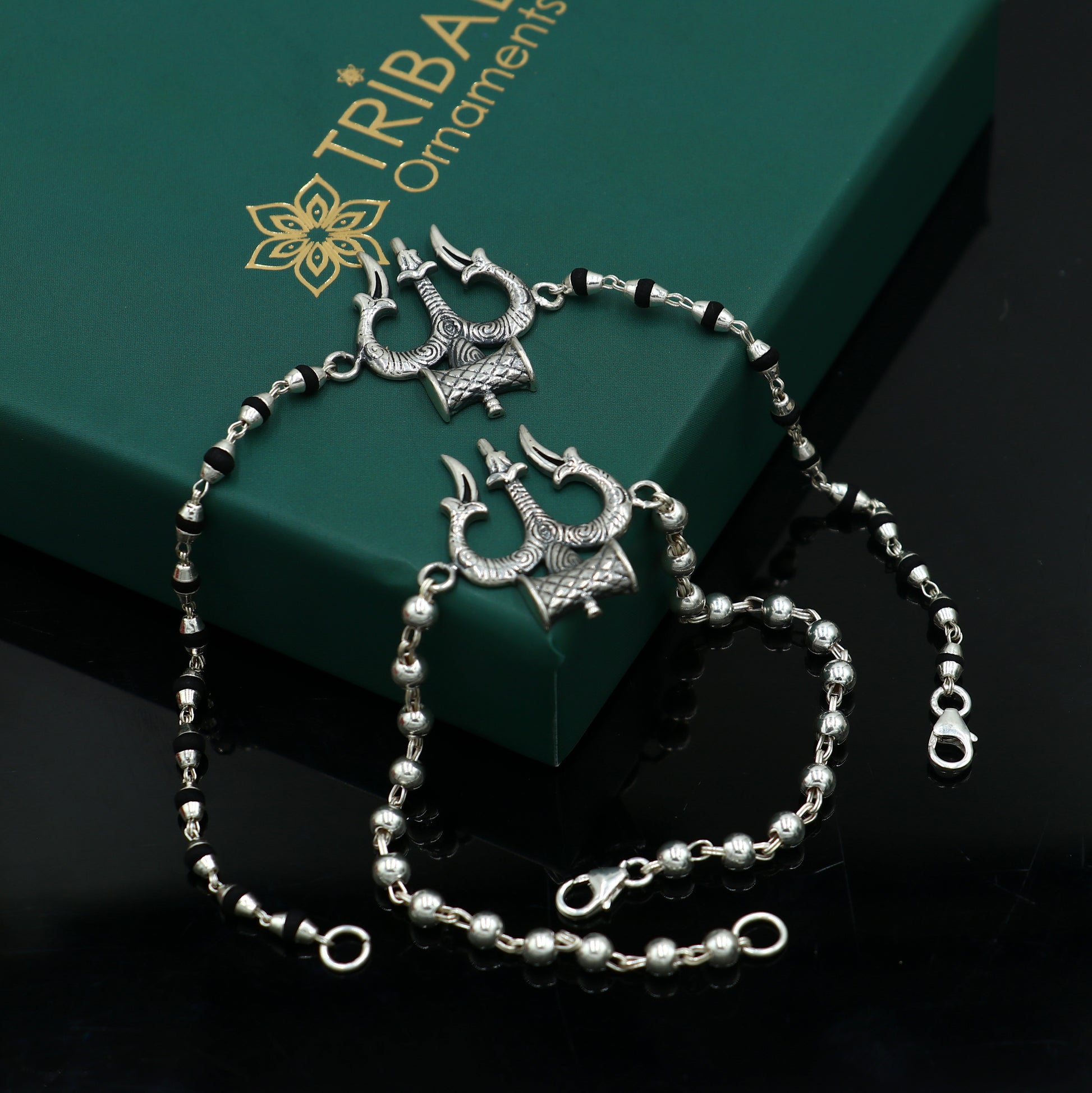 925 sterling silver Trishul / Trident design unisex bracelet rk407