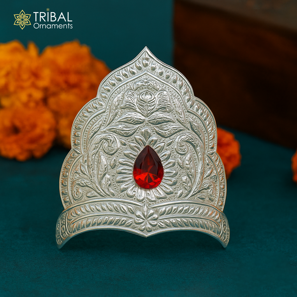 925 sterling silver vintage antique design handmade mukut (crown), amazing design silver god crown home temple god art su871