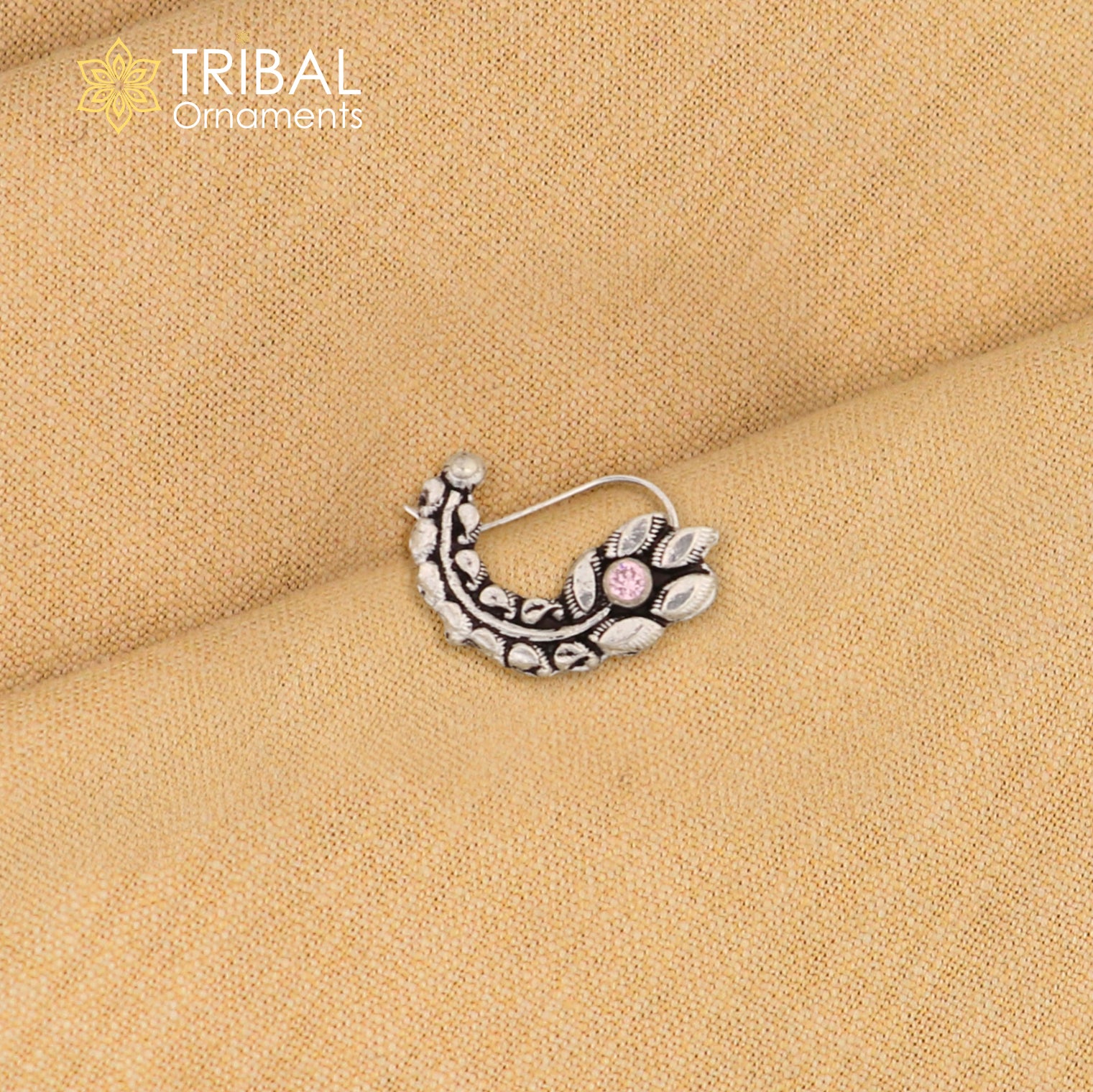 925 sterling silver vintage leaf shape design stone nose pin ethnic tribal jewelry np94
