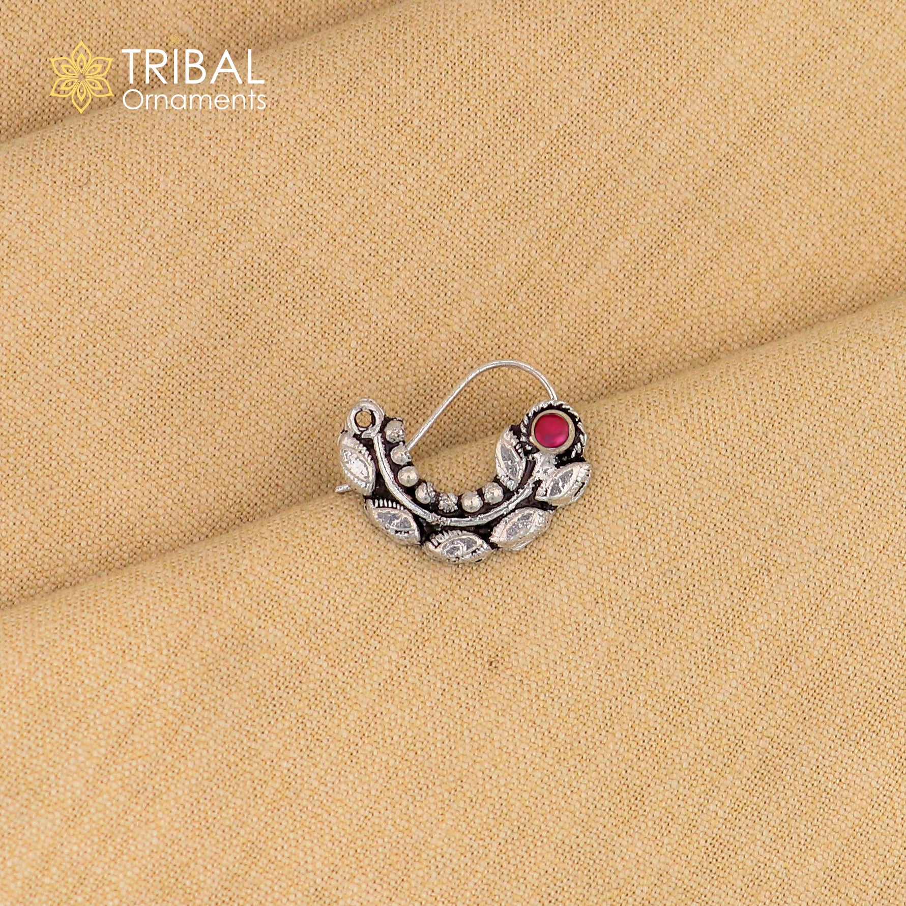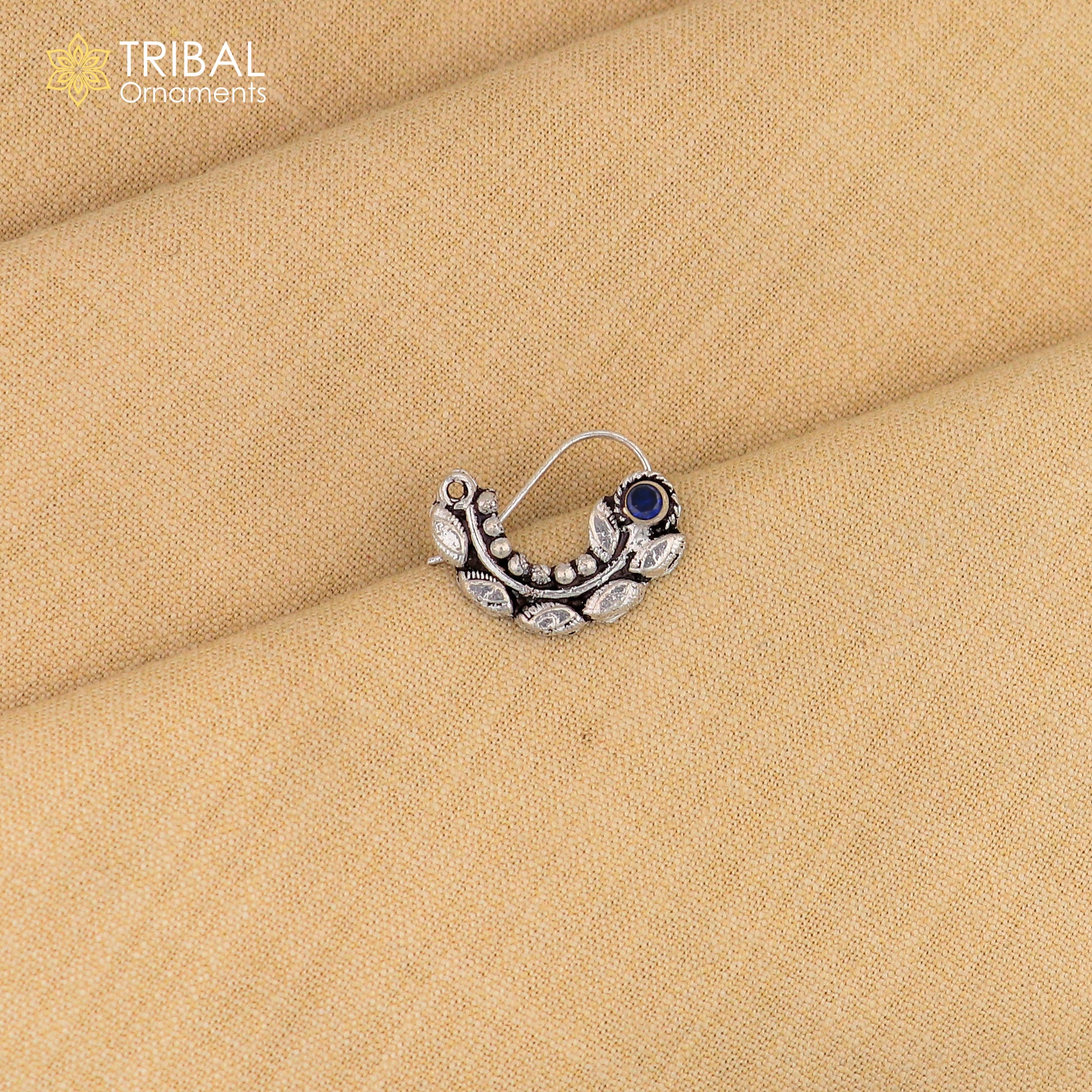 925 sterling silver vintage leaf shape design stone nose pin ethnic tribal jewelry np91