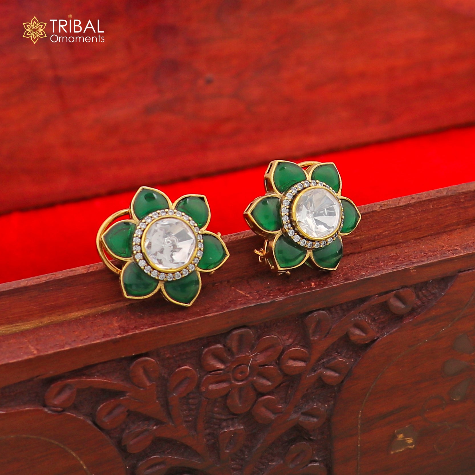 Keep your jewellery in a dry place, avoid contact with chemicals, perfumes, or water for long periods. Clean gently with a soft cloth to maintain shine.