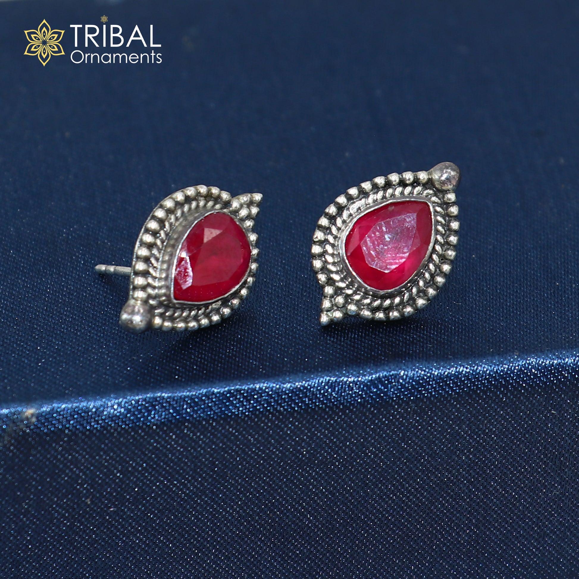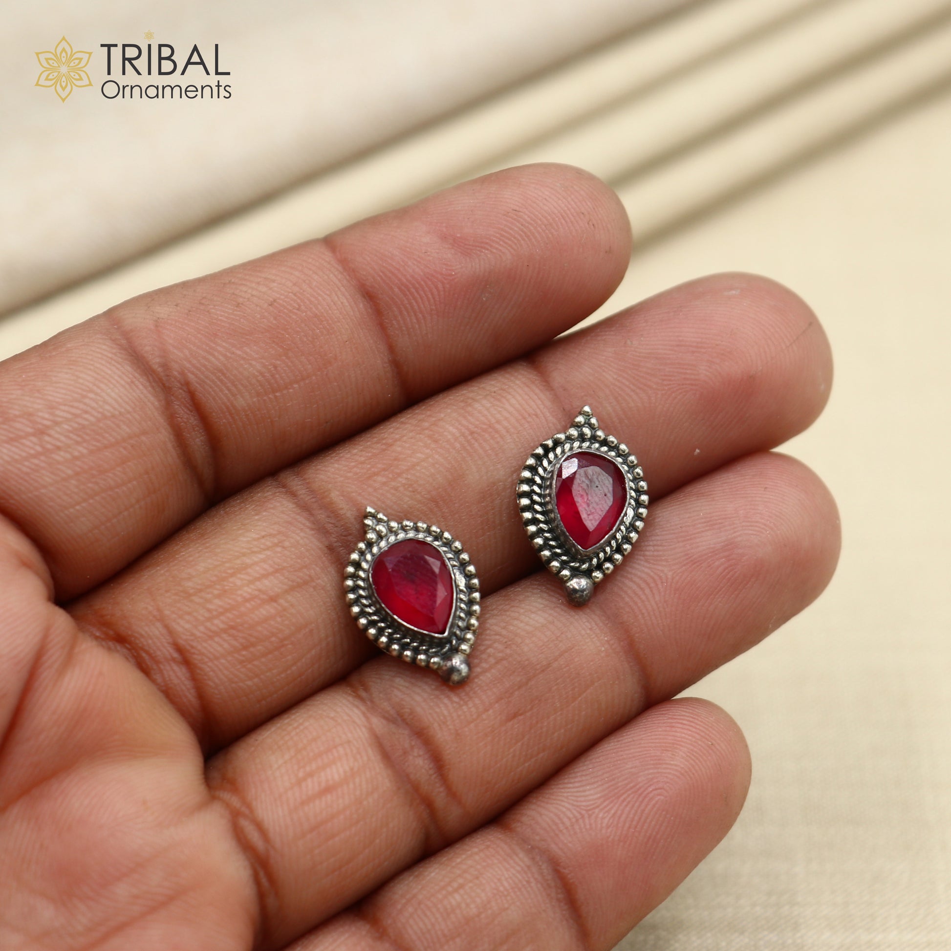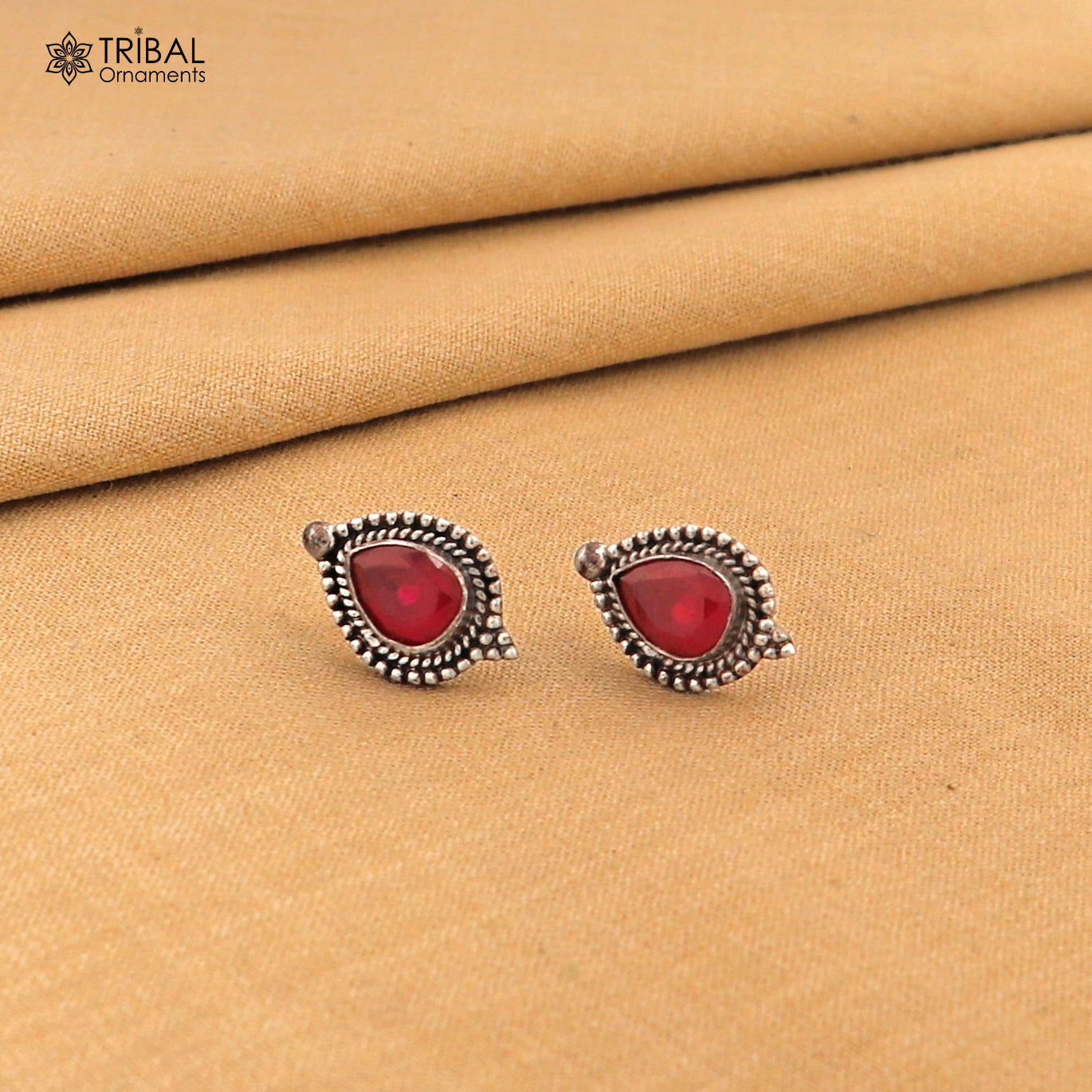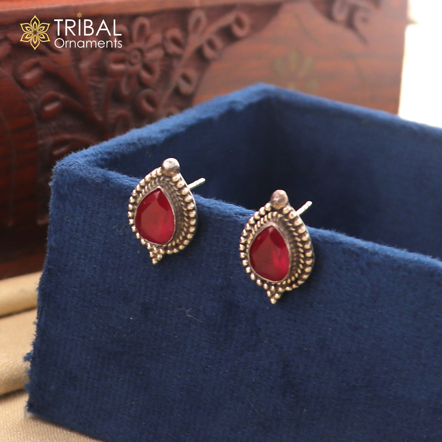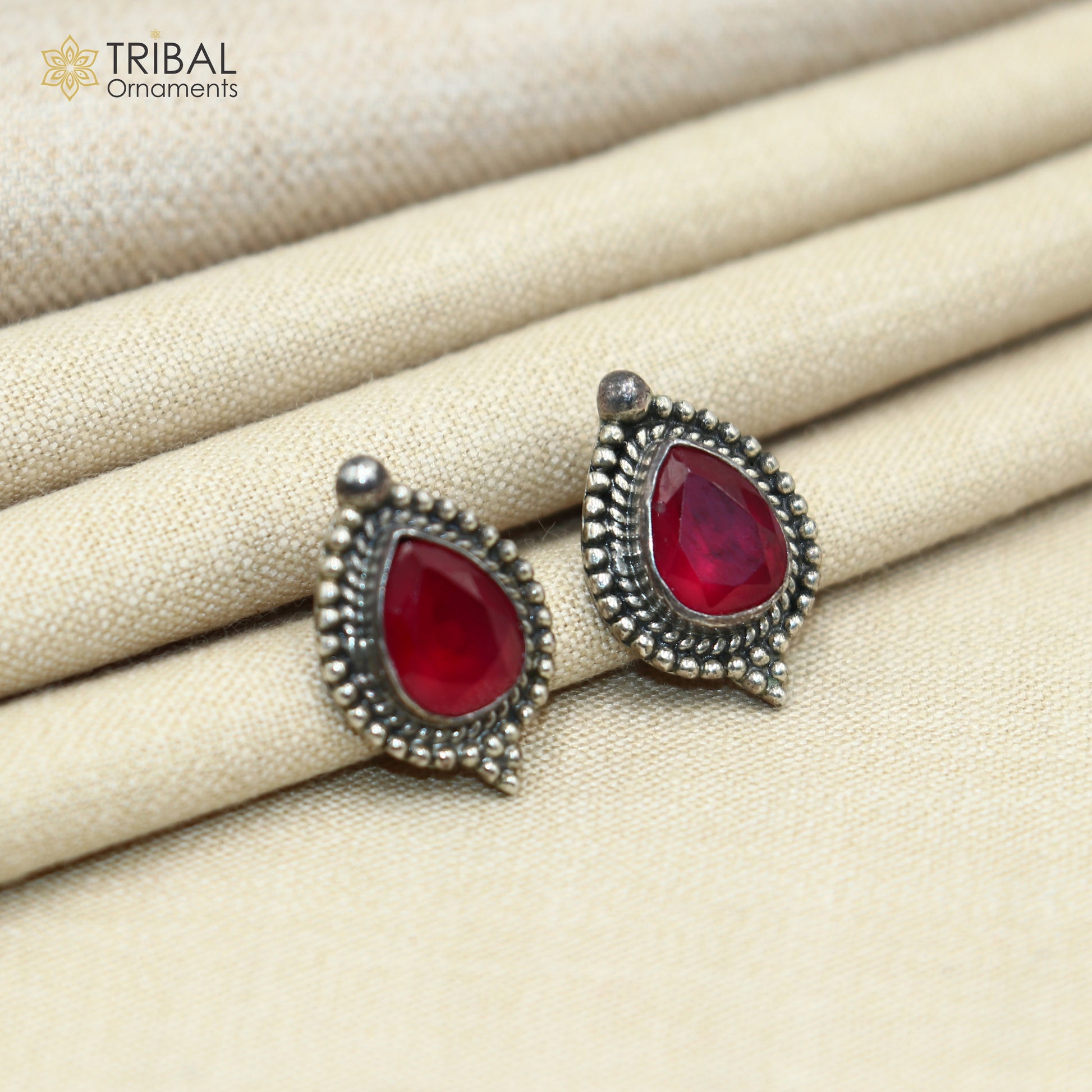 925 sterling silver vintage design pink stone ethnic stud earring s1372