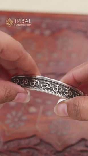 925 sterling Stylish handcrafted silver 'AUM' mantra bangle bracelet adjustable kada unisex ethnic stylish fashionable jewelry india nsk140