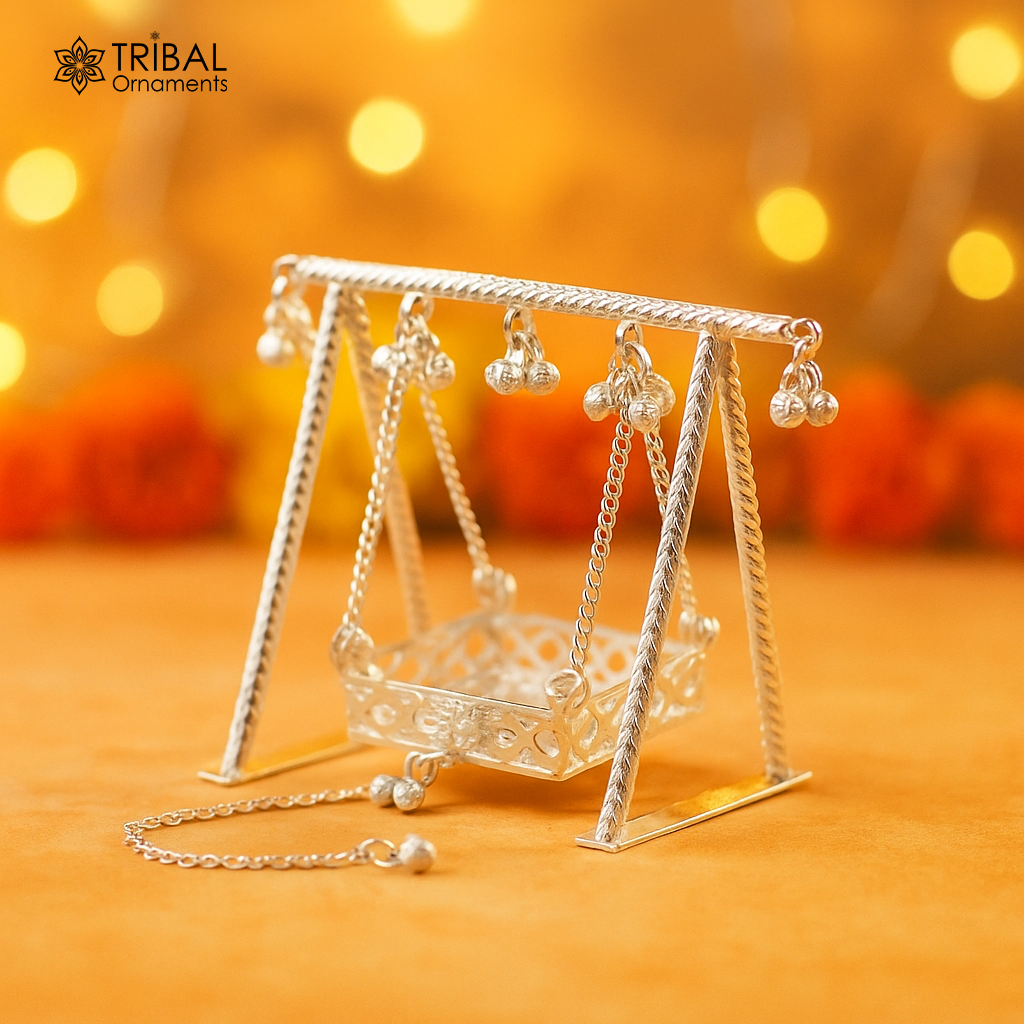 925Sterling silver handmade Bal Gopala jhula, little Krishna swing, child Krishna palana, silver jhula, laddu Gopal Jhula, silver art su379