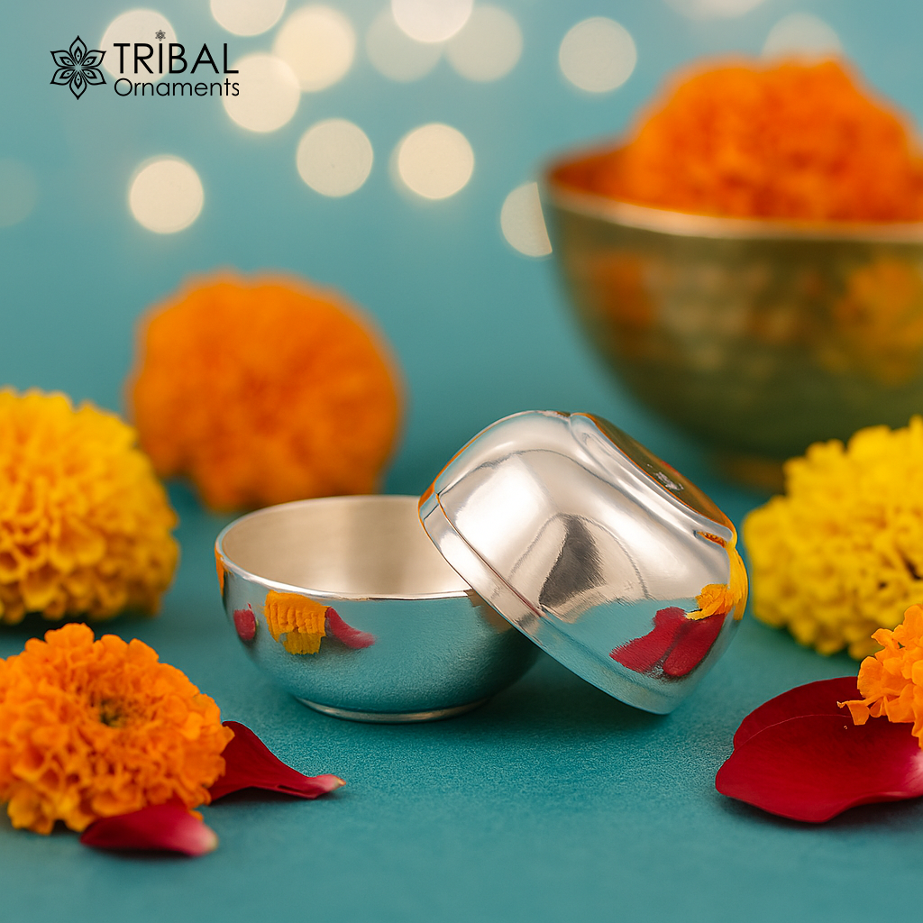 999 fine silver handmade gorgeous prasad box with cap, trinket box, container box, brides gifting, jewelry box, solid silver article stb95