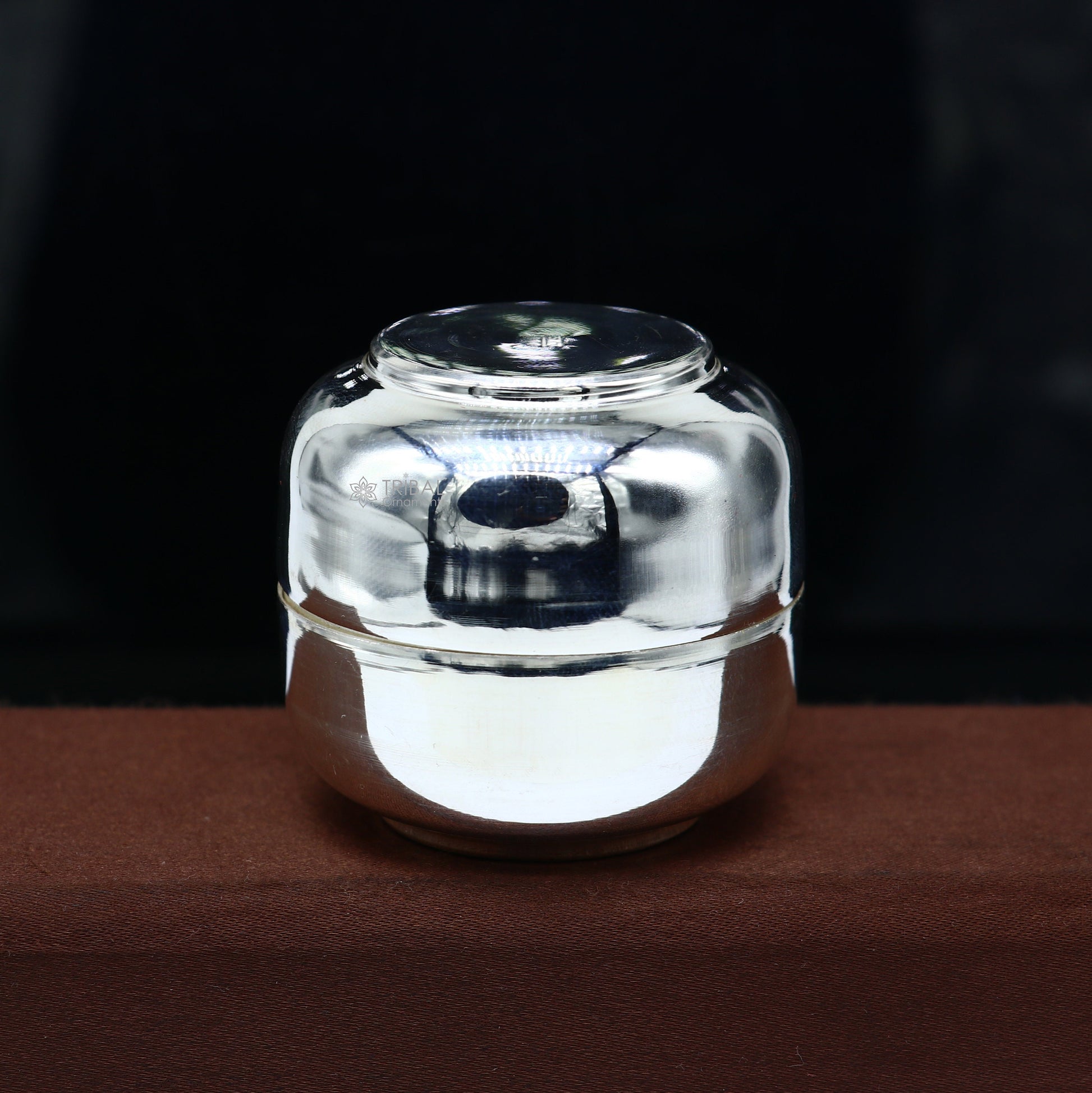 999 fine silver handmade shiny small Prasadam box, trinket box, container box, unique puja box utensils, solid silver article stb842