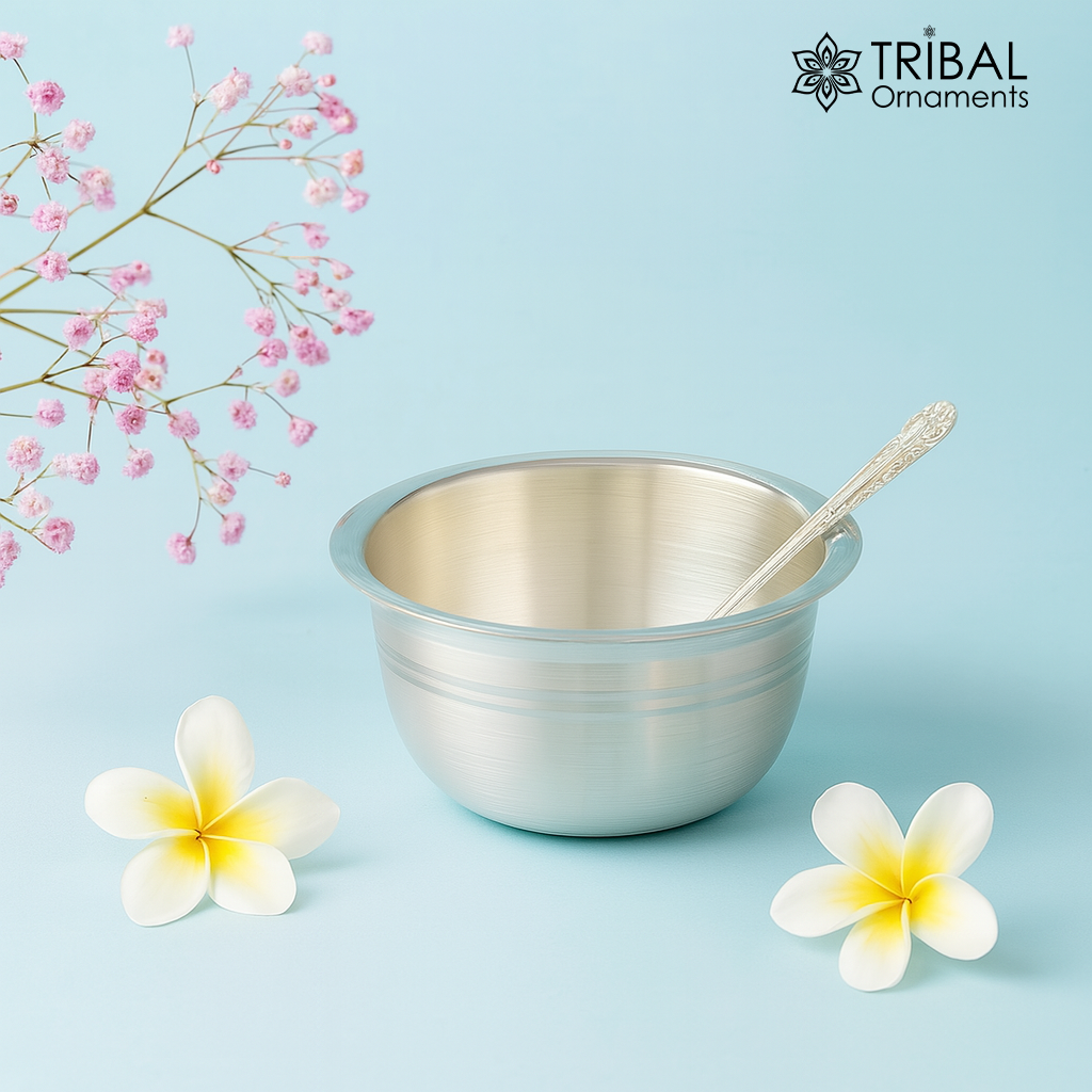 999 fine silver handmade small baby bowl and spoon set, silver tumbler, flask, stay baby/kids healthy, silver vessels utensils sv119