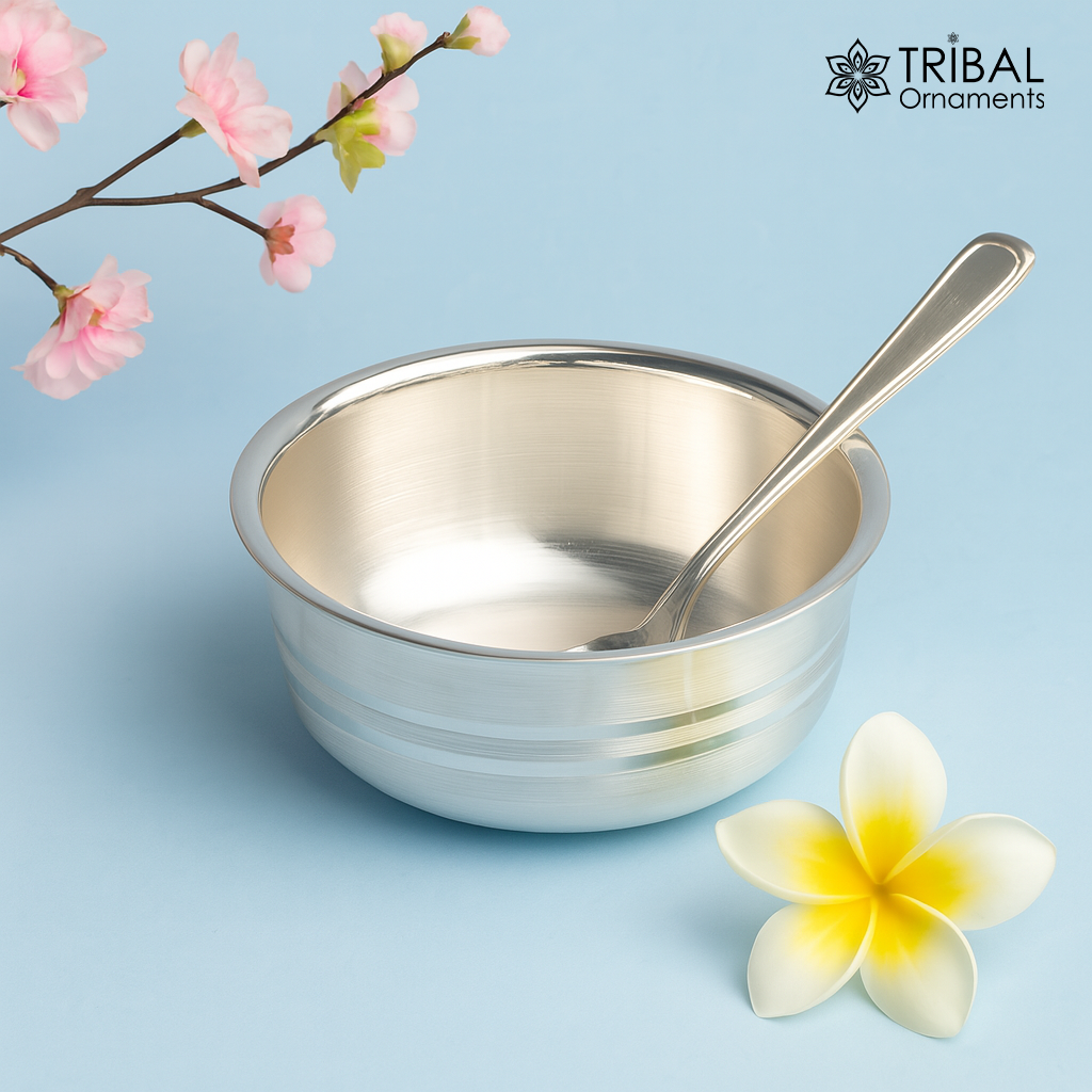 999 Fine silver handmade solid bowl and spoon, silver utensils, silver vessel, baby food bowl, baby kitchen set, silver puja article sv180