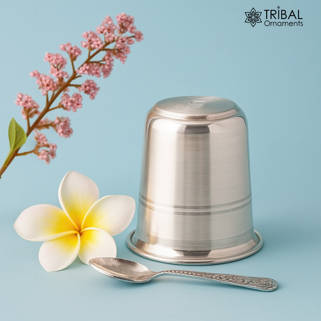 999 fine silver handmade water/milk Glass tumbler, silver flask, baby kids silver utensils set for stay healthy, best gifting article sv137