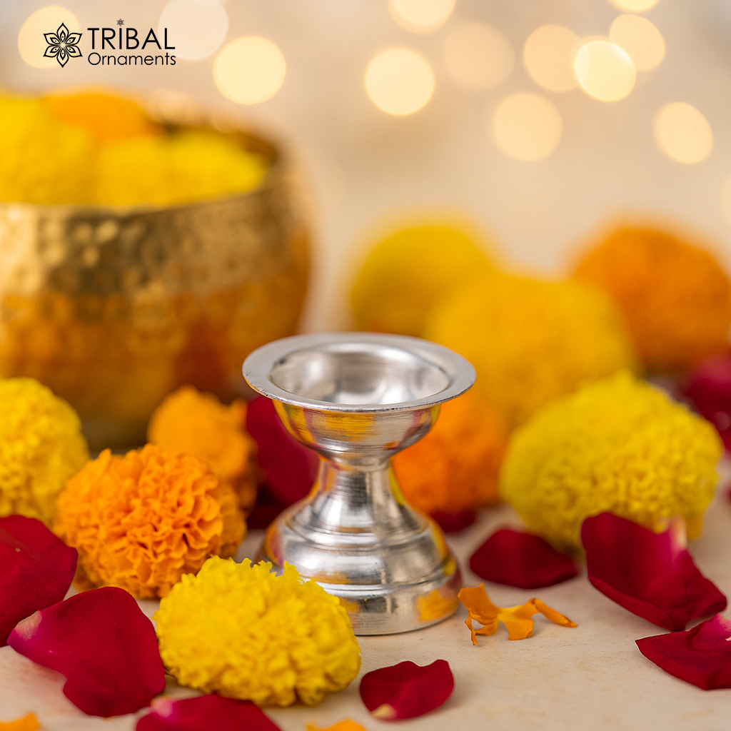 999 pure silver handmade elegant oil lamp, silver home temple utensils, silver diya, deepak, silver vessels, silver art decorative art su082