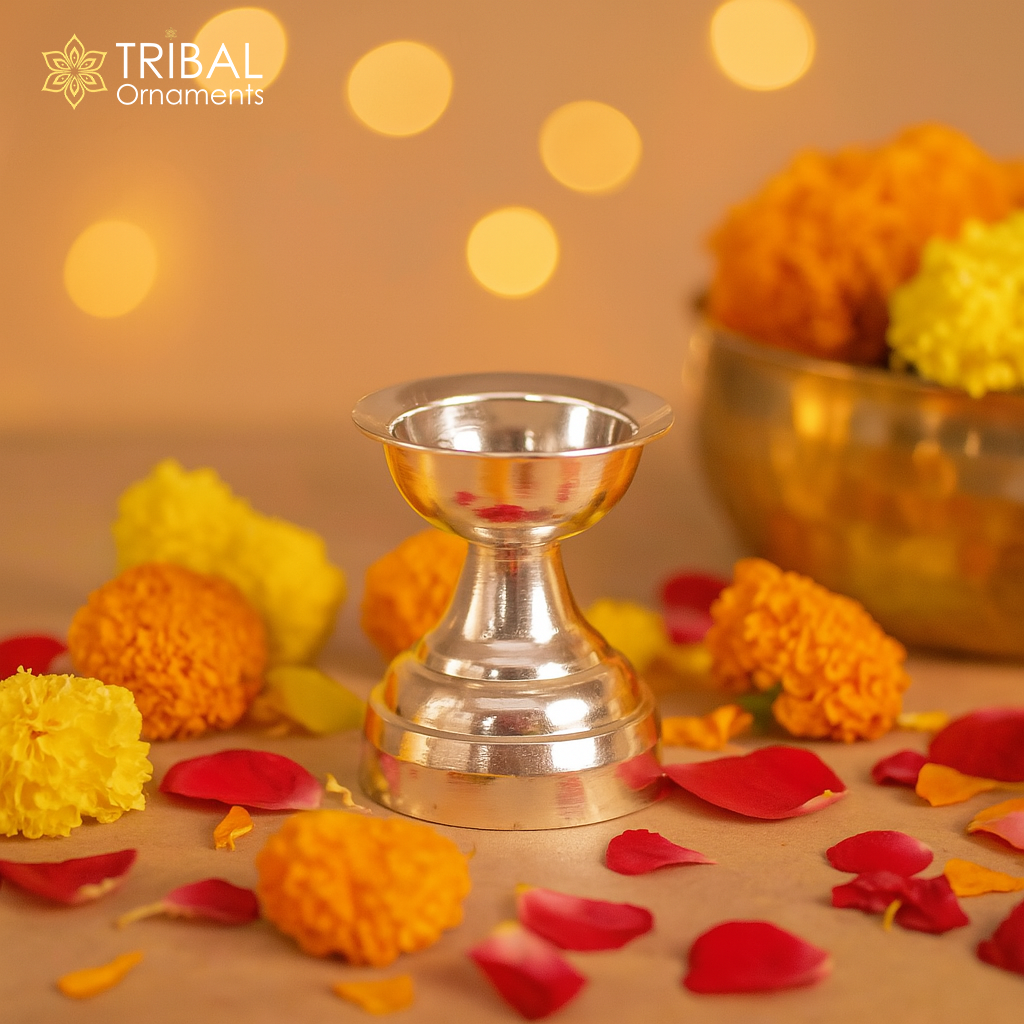 999 pure silver handmade elegant oil lamp, silver home temple utensils, silver diya, deepak, silver vessels, silver art decorative art su387