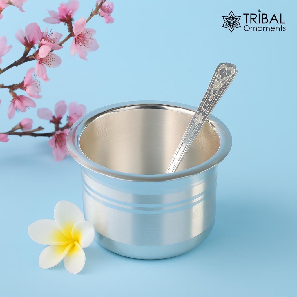999 pure silver handmade solid bowl and spoon, silver baby feeding set tumbler bowl, stay healthy, silver vessels, silver utensils sv78