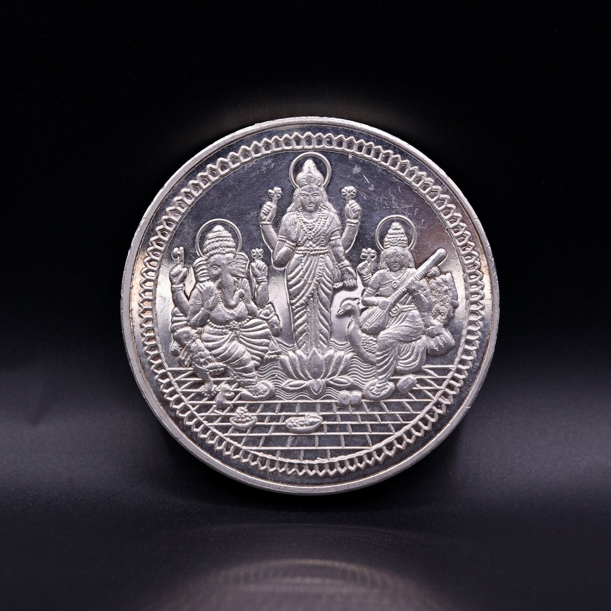 999 solid silver amazing Indian idol lord Ganesha laxmi and sarashwati print 200 grams coin amazing gifting and collcetible coin sst03
