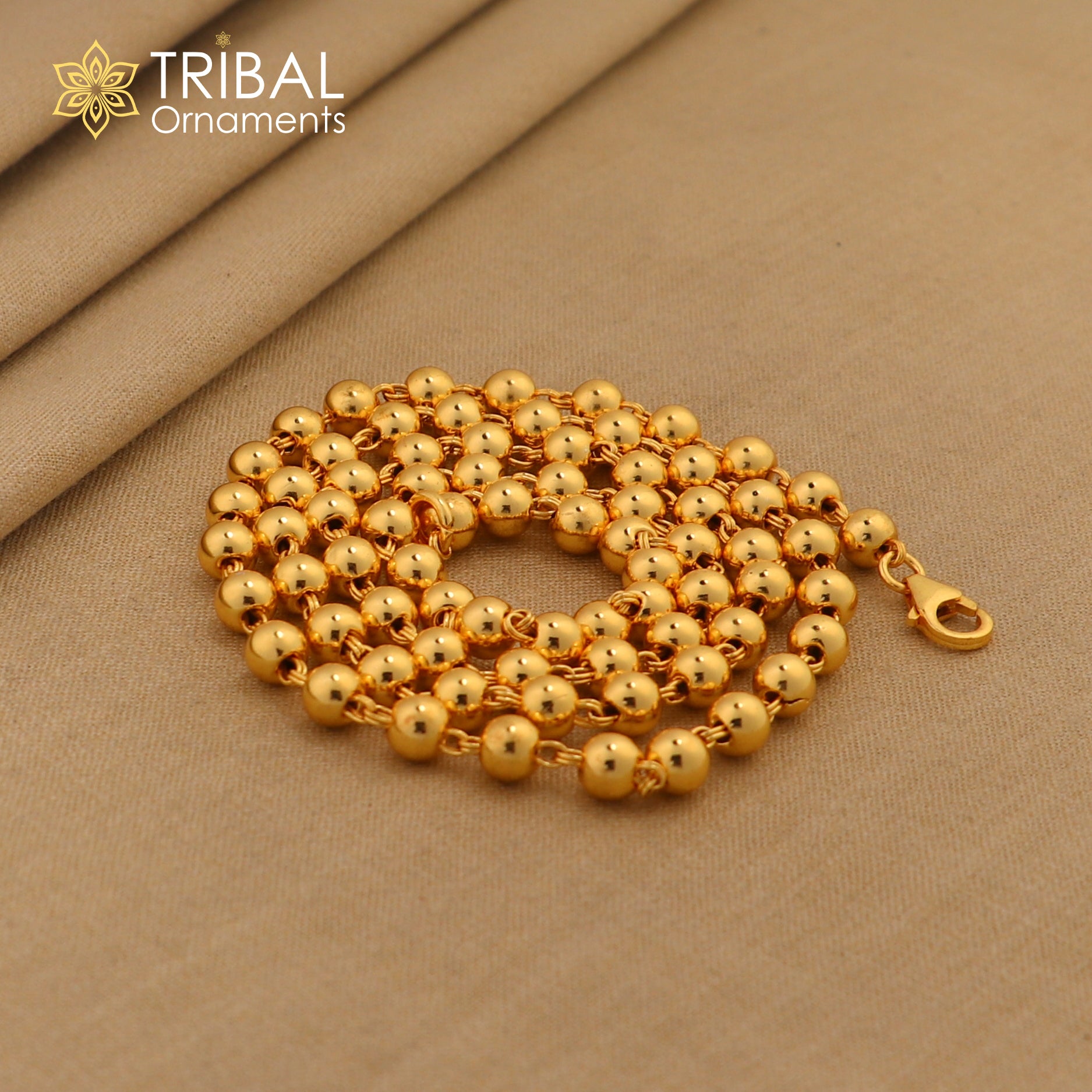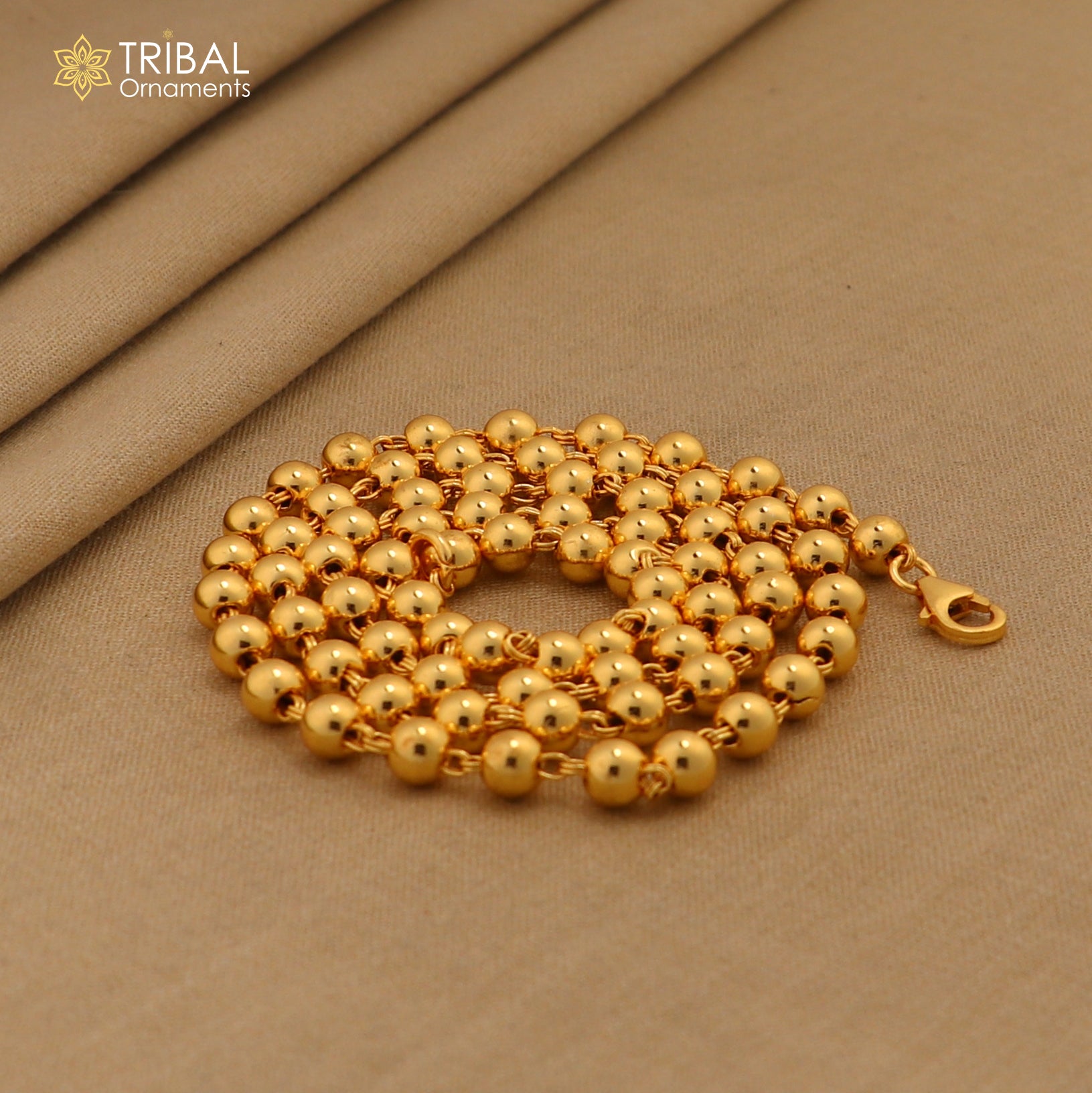 Amazing sterling silver handmade gorgeous gold polished beaded necklace, excellent customized gifting stylish chain unisex jewelry ch87