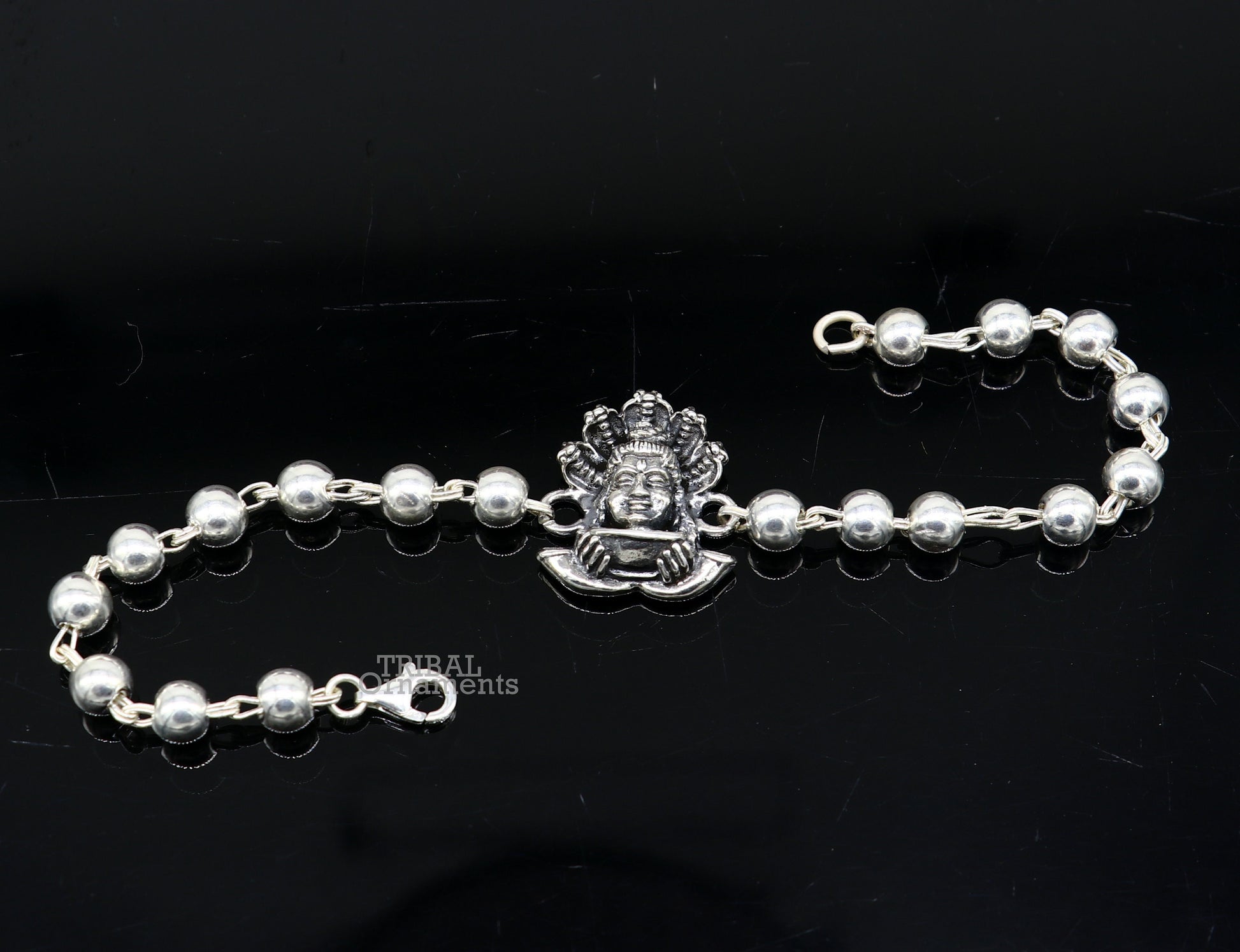 Amazing Stylish lord shiva 925 sterling silver bracelet in rudraksh/black basil/white basil and silver beaded chain rk255