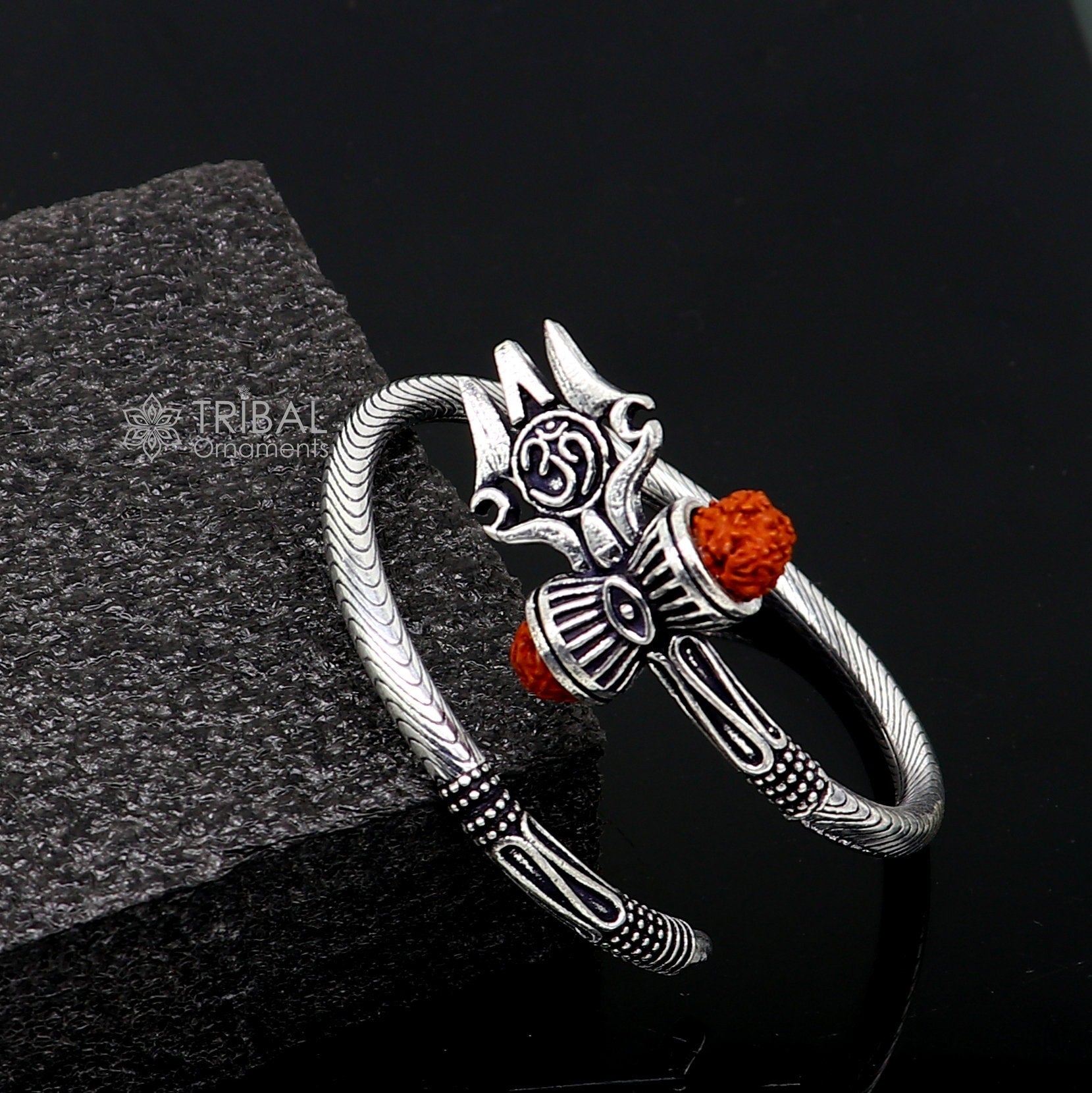 Divine Lord Shiva trident trishul trishool kada 925 Sterling silver handmade bangle bracelet with natural Rudraksha magical kada nsk740