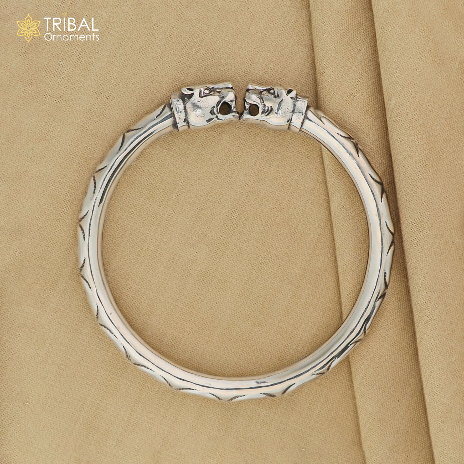 925 sterling silver lion face design handcrafted work bangle bracelet kada unisex customized jewelry nsk707