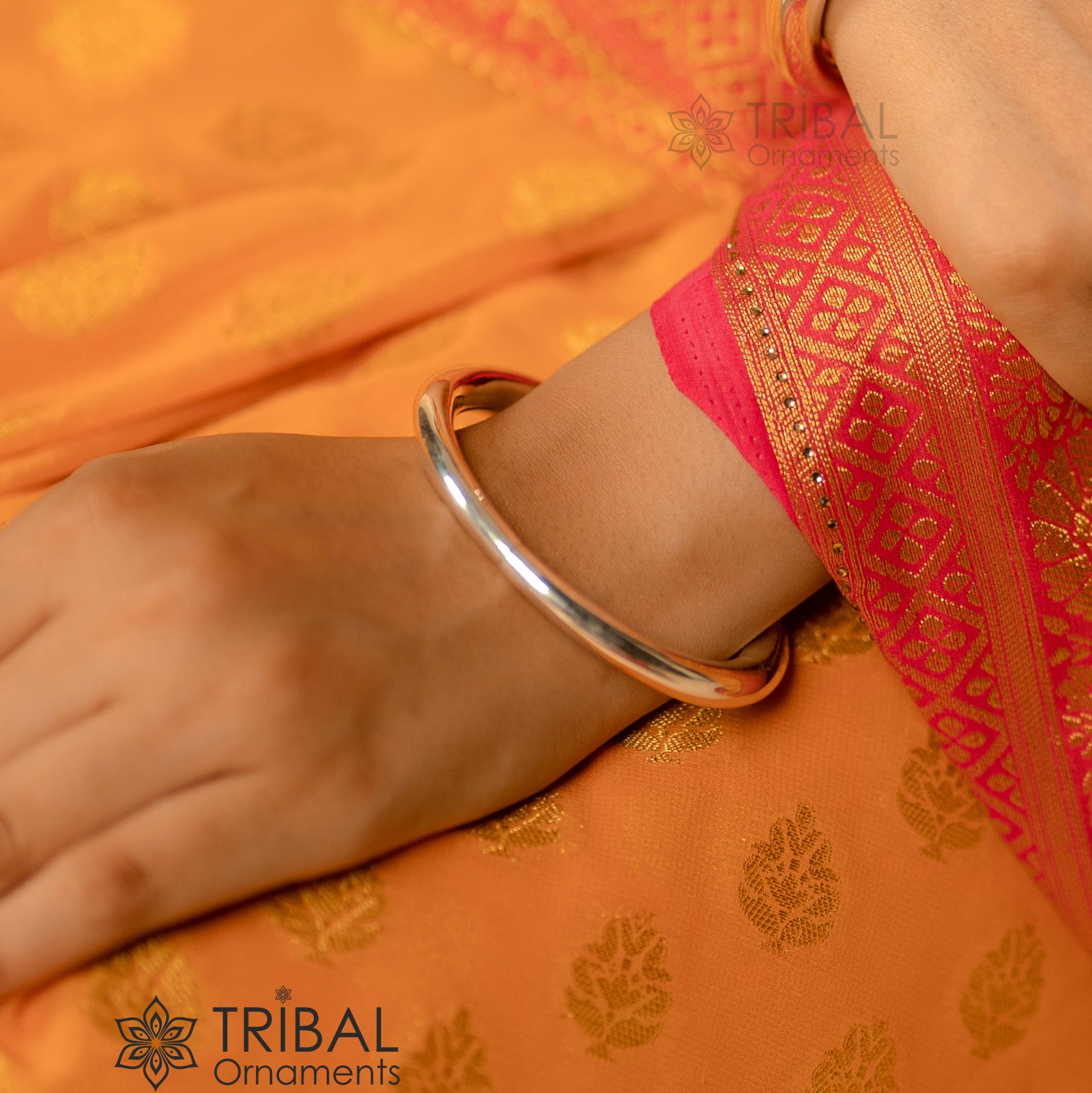 Fine 925 sterling silver plain shiny bright bangle bracelet kada, excellent personalized gifting stylish fancy bangle men's or girls nssk350