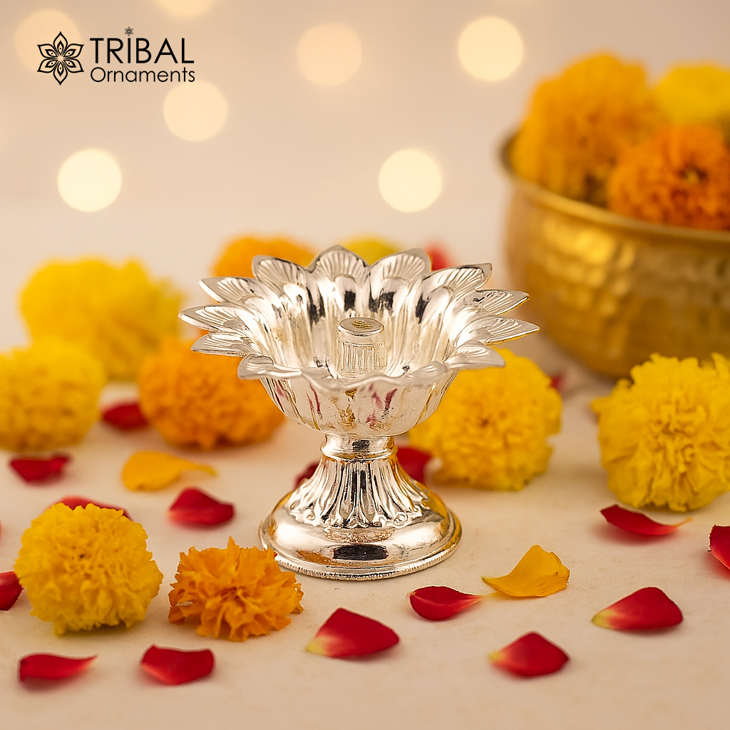 Fine 999 silver handmade flower shape oil lamp, silver temple utensils, silver diya, deepak, silver vessels, silver art decorative art su174