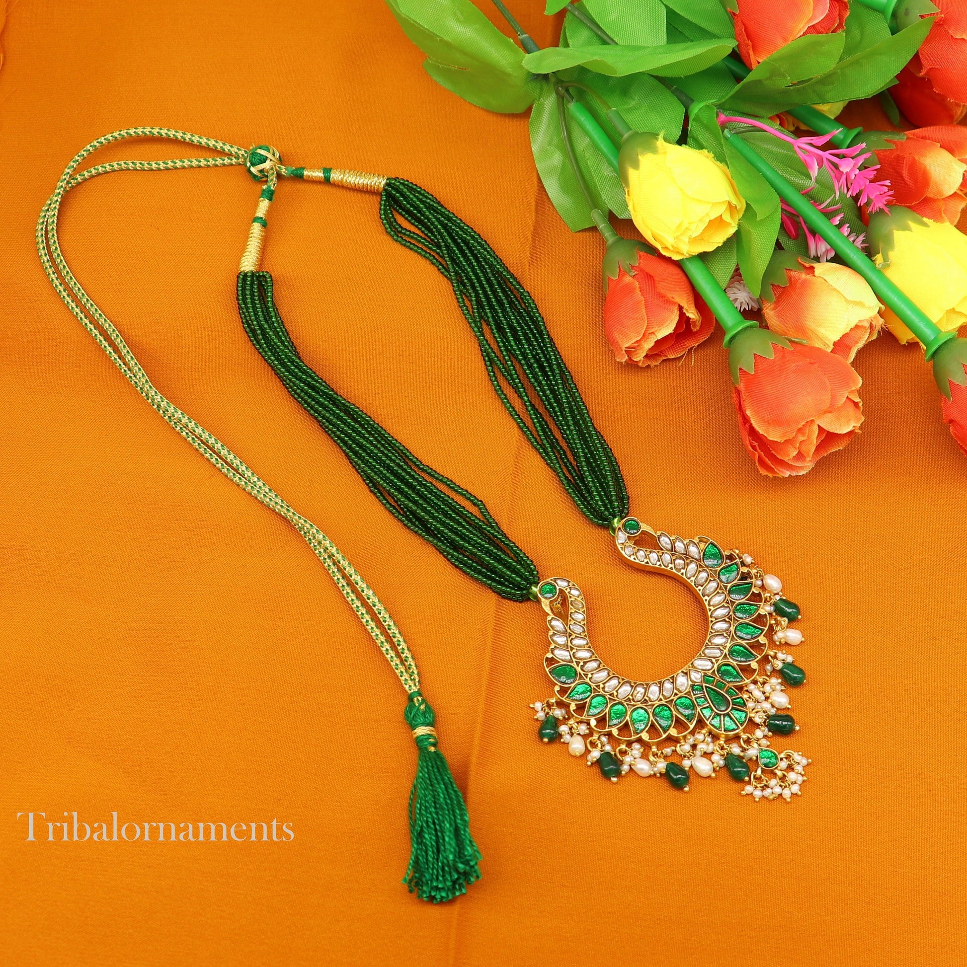 Gold polished over 92.5 sterling silver Fabulous charm necklace, Stunning peacock design pendant with hanging pearls necklace set269