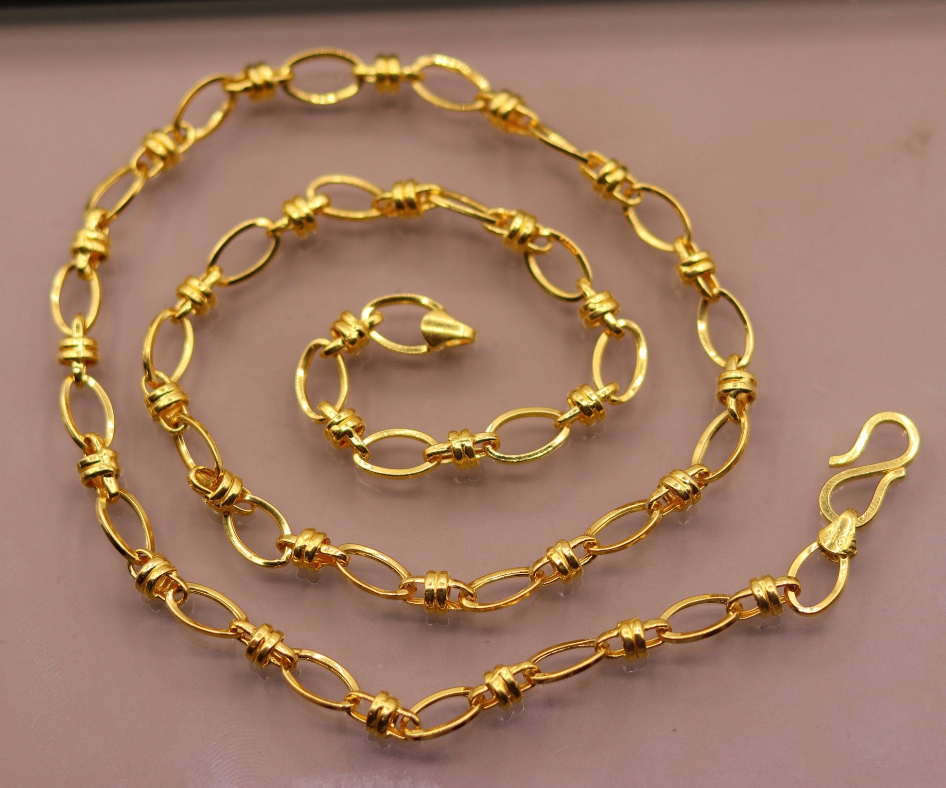 Handmade 22K Yellow Gold Tribal Design Link Chain Necklace — 6.5mm Wide, Indian Traditional Jewelry, Gift Necklace | CH189