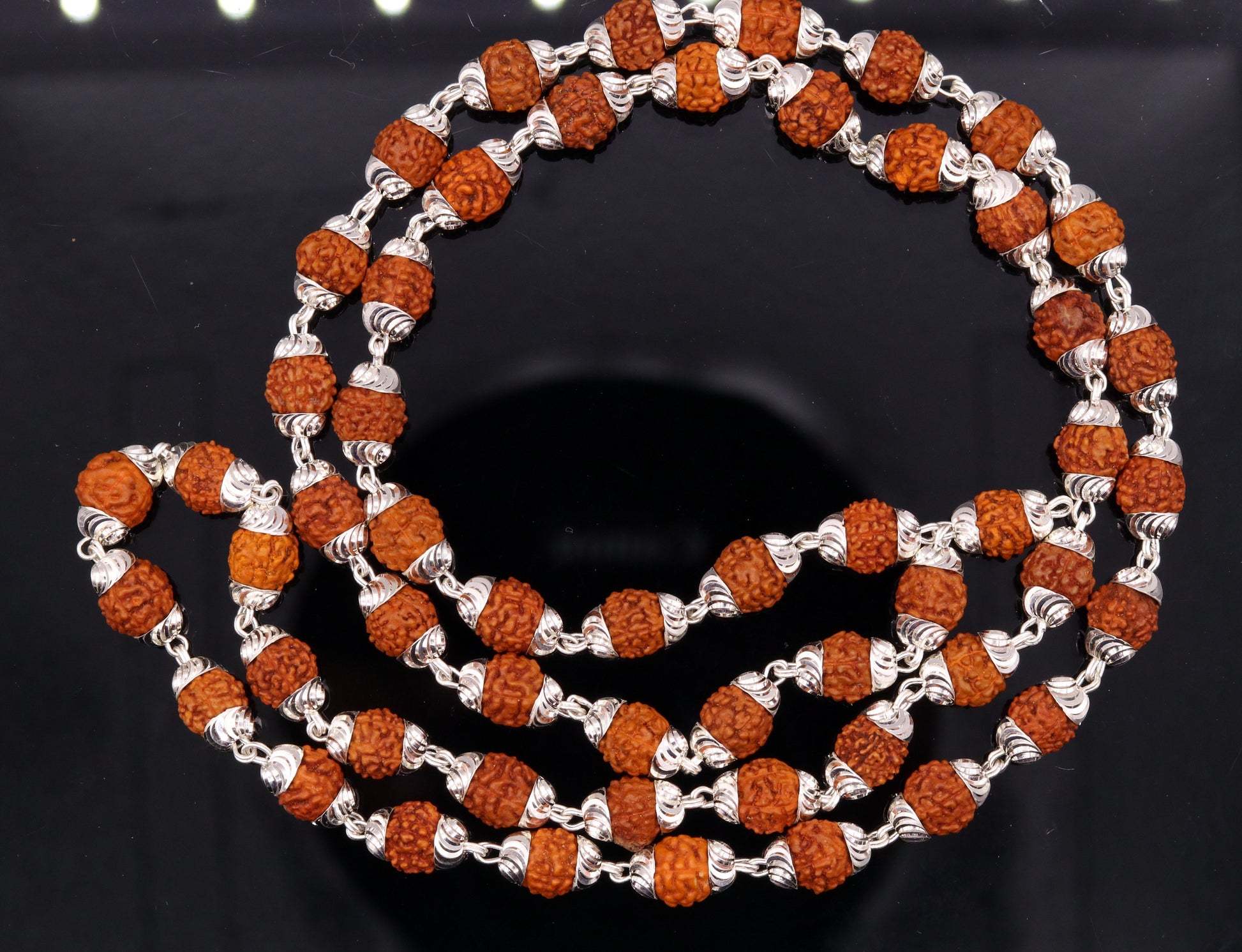 Handmade silver caps natural rudraksha bead chain necklace fabulous unisex silver jewelry awesome design