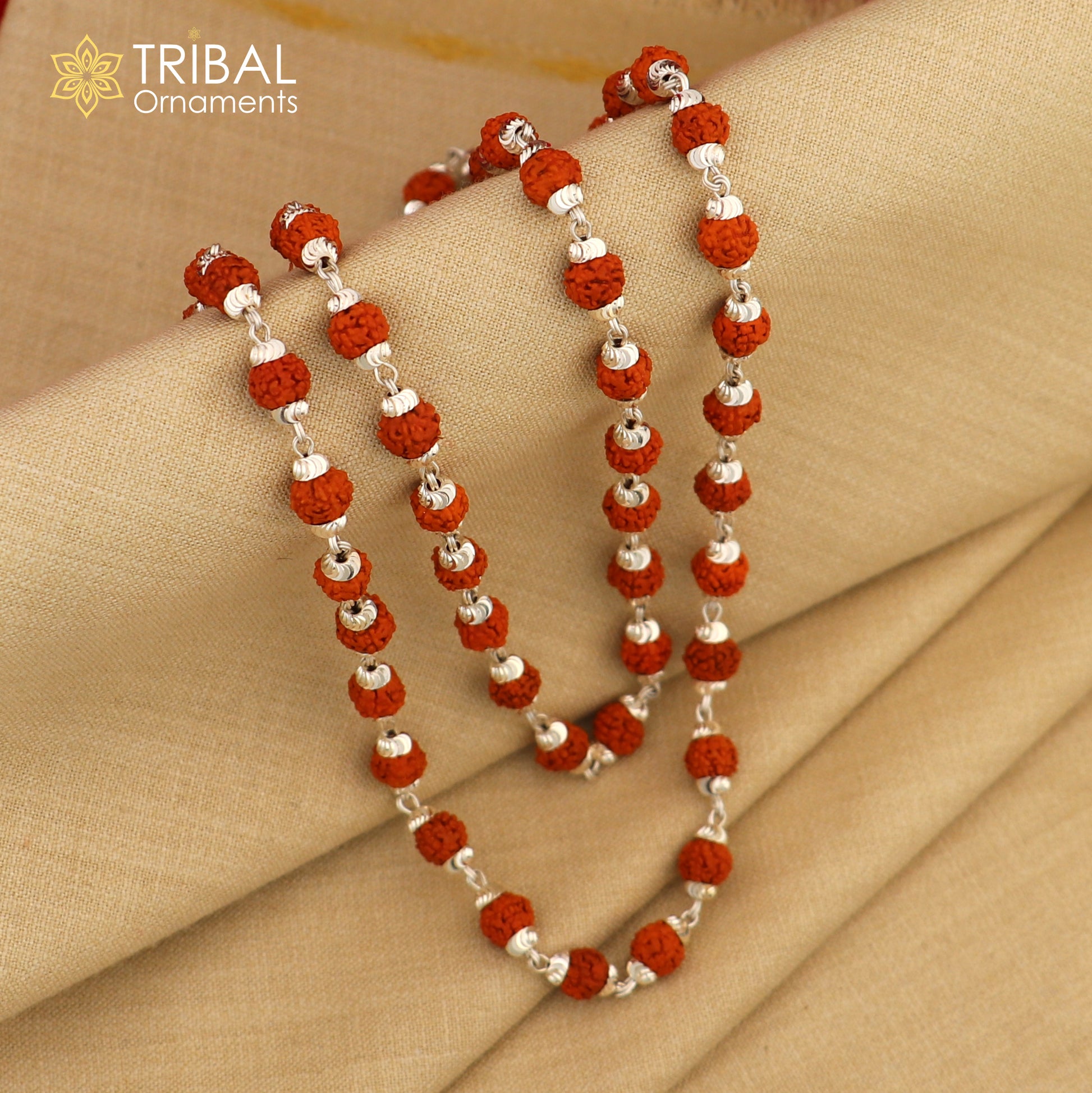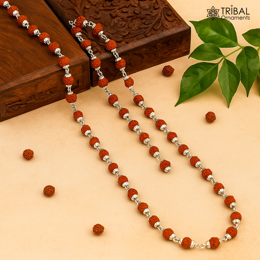Handmade silver caps natural rudraksha bead chain necklace fabulous unisex silver jewelry awesome design ch001