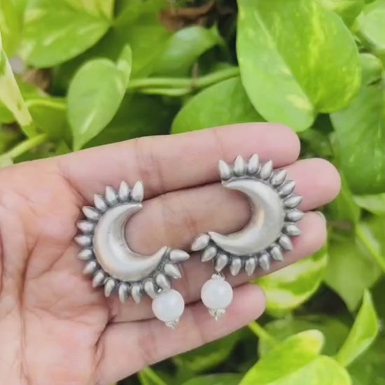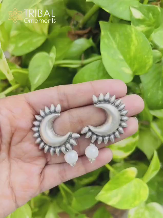 Handmade vintage design 925 sterling silver fabulous half moon style stud earrings with fabulous hanging pearl stud earring jewelry s1297