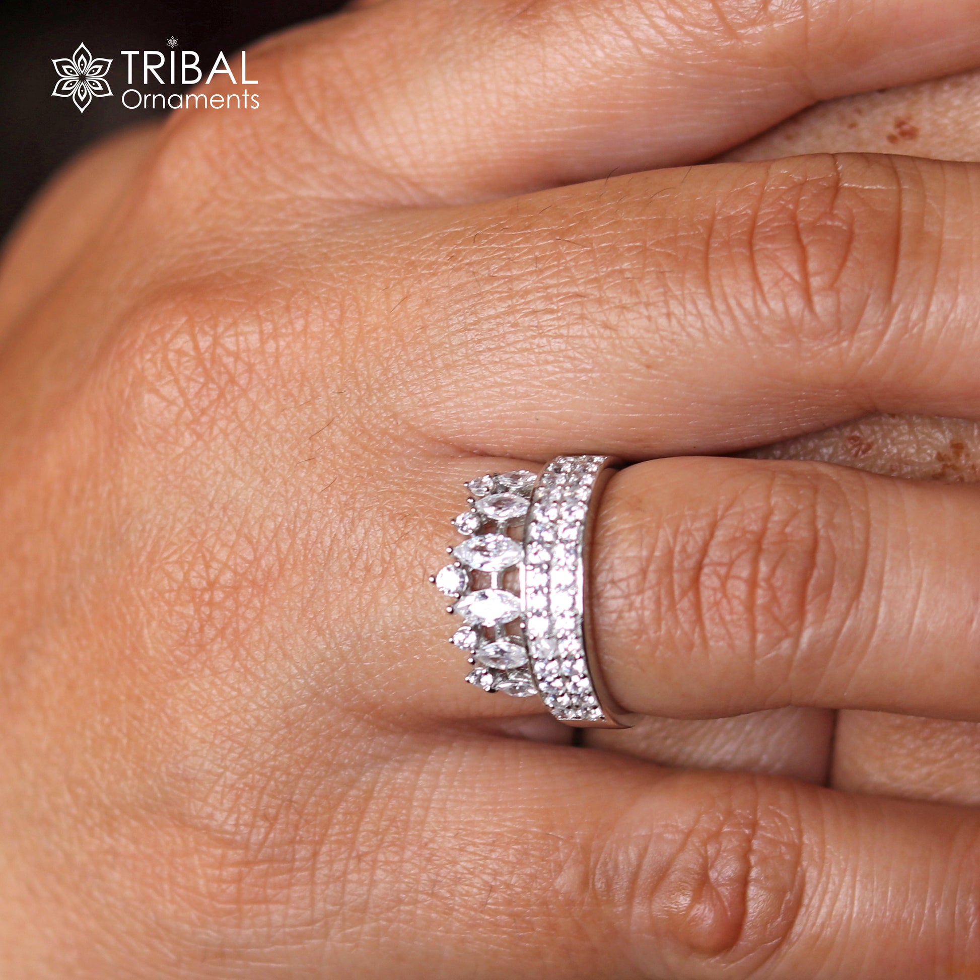 white stone queen style silver ring