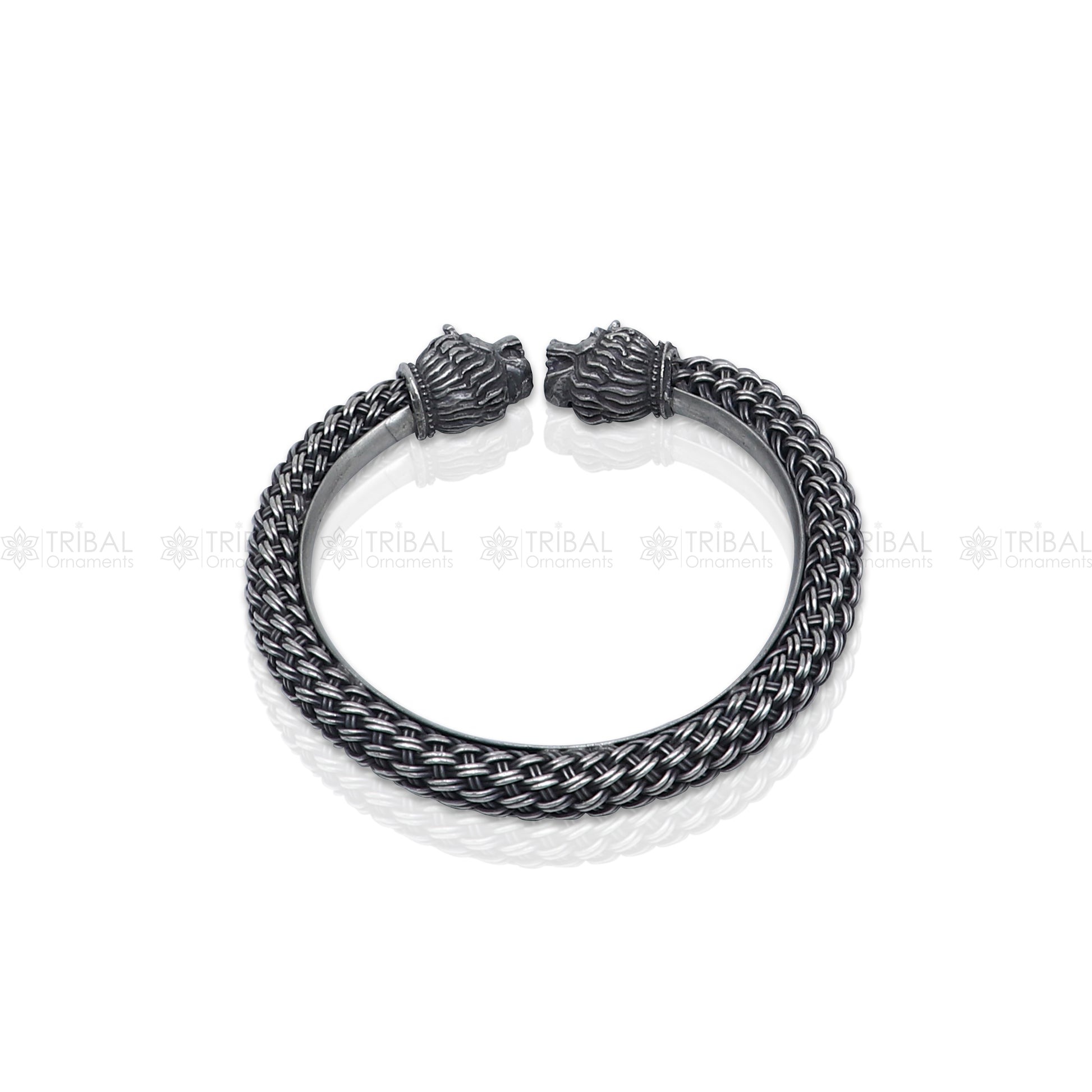 lion face design 925 sterling silver handmade bangle bracelet kada nsk852