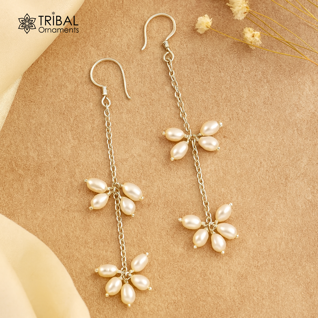 Natural oval shape peal hangings 925 sterling silver customized hoops earring, excellent gorgeous brides fancy fashion jewelry ear478