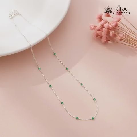 Pure 925 sterling silver green colour's beaded chain necklace, vintage antique style Mangalsutra necklace ms 103