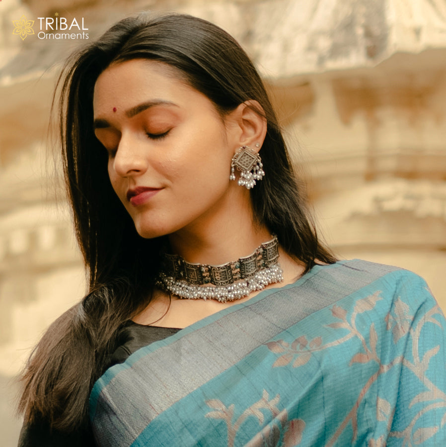 Pure 925 sterling silver handmade customized hanging pearl luxury necklace, best brides belly dance gifting Guttapusalu necklace set251