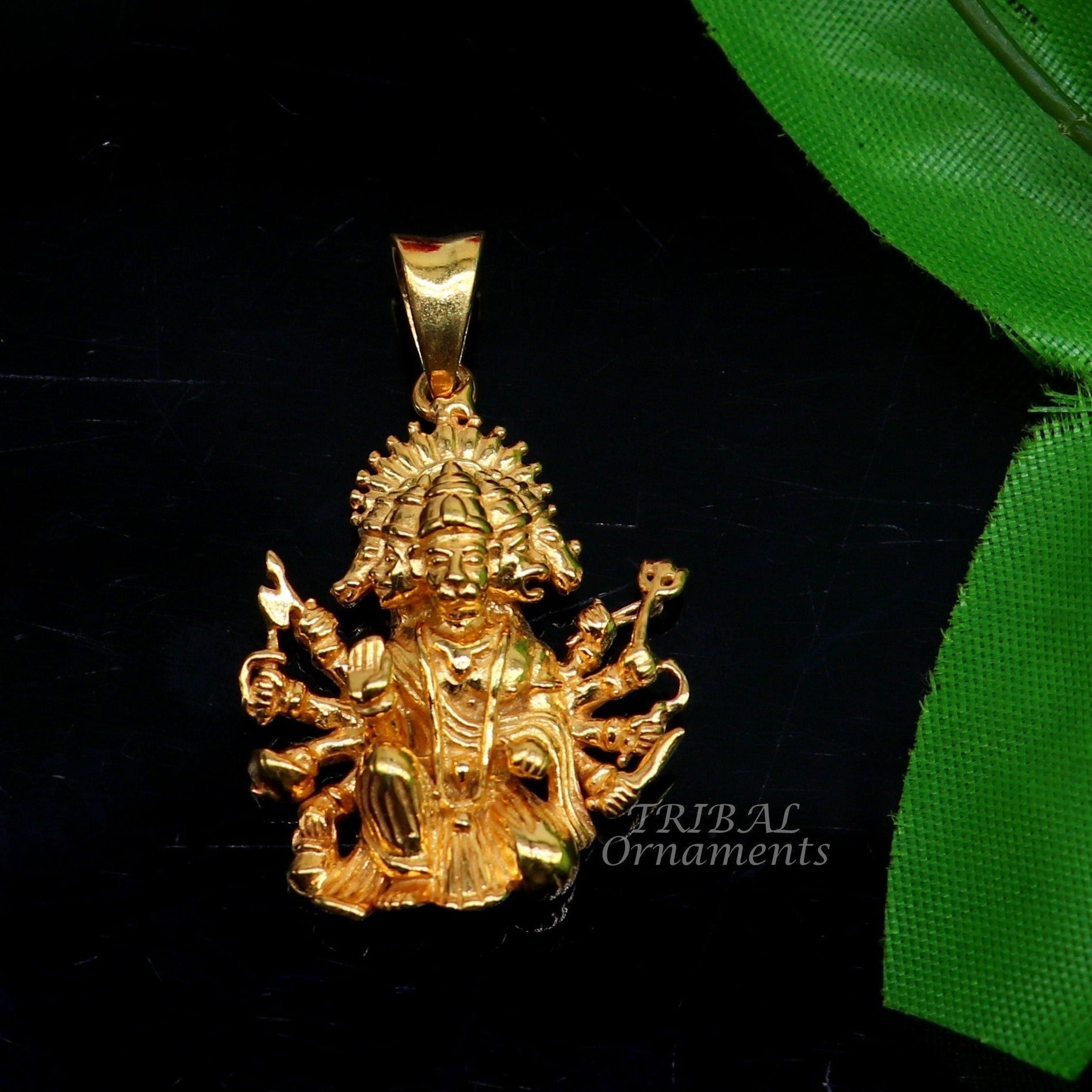 Pure 925 sterling silver handmade Hindu god Lord Panchmukhi Hanuman Gold polished pendant, amazing designer pendant unisex jewelry nsp543
