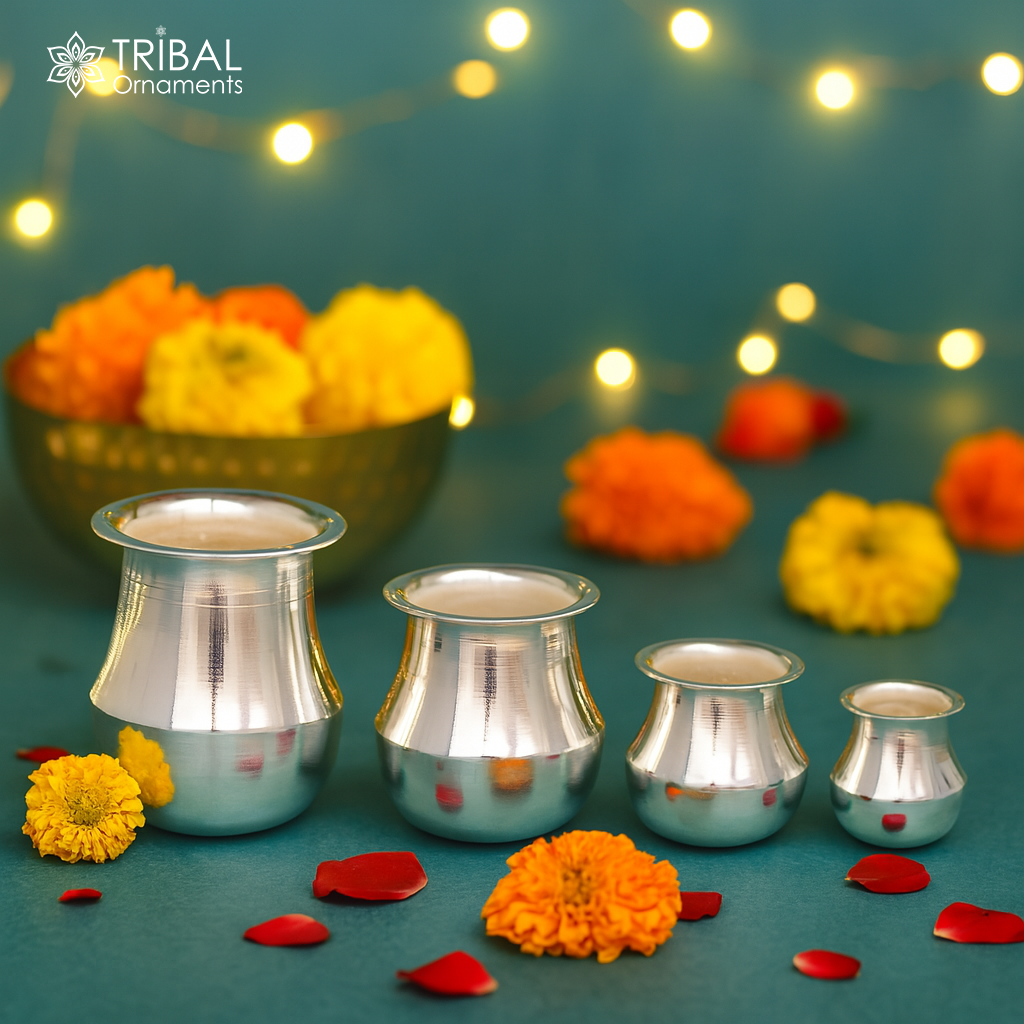 Pure 925 sterling silver handmade plain small Kalash or pot, unique special silver puja article, water or milk kalash pot india su1236
