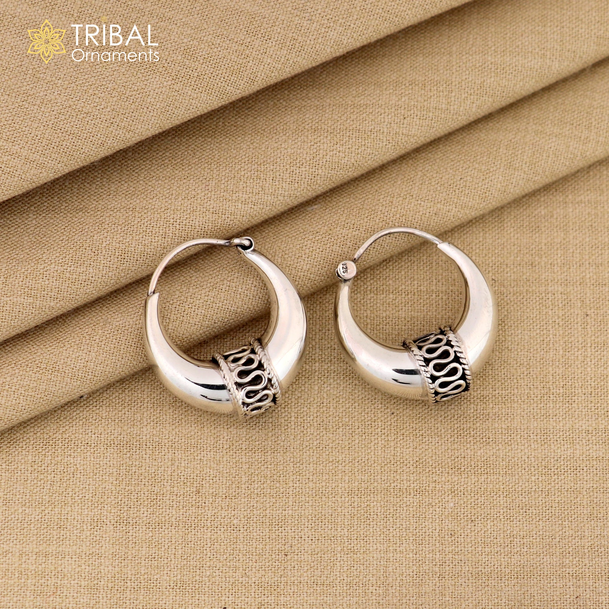 Pure 925 sterling silver handmade vintage ethnic style hoops earrings kundal,ethnic pretty bali tribal belly dance jewelry from india s591