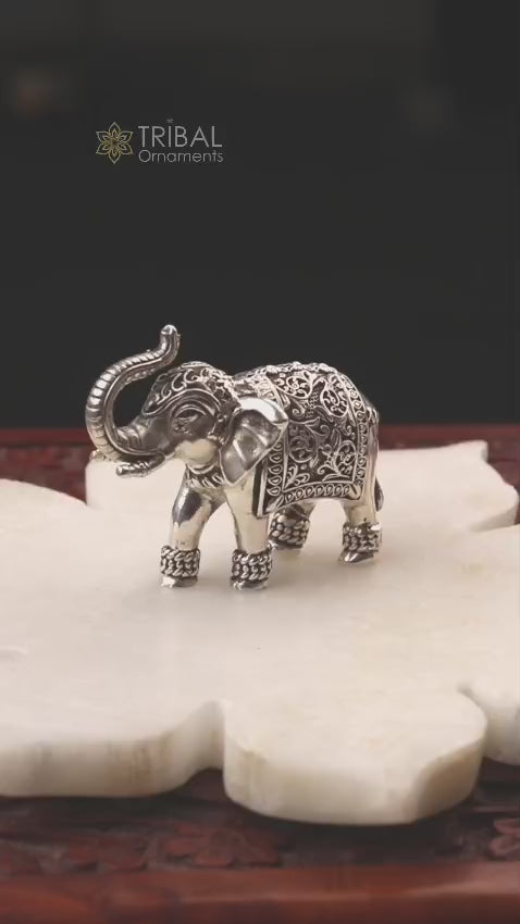 Pure 925 Sterling silver Kandrai work Nakshi design customized Elephant statue, puja article figurine, home décor puja articles art122