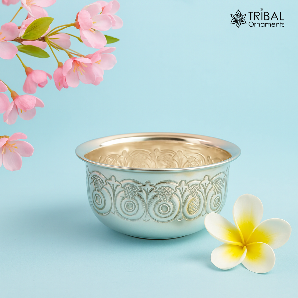 Silver handmade unique design work bowl, silver utensils for rice ceremony Annaprasan, silver worshipping/puja utensils prasad bowl sv279