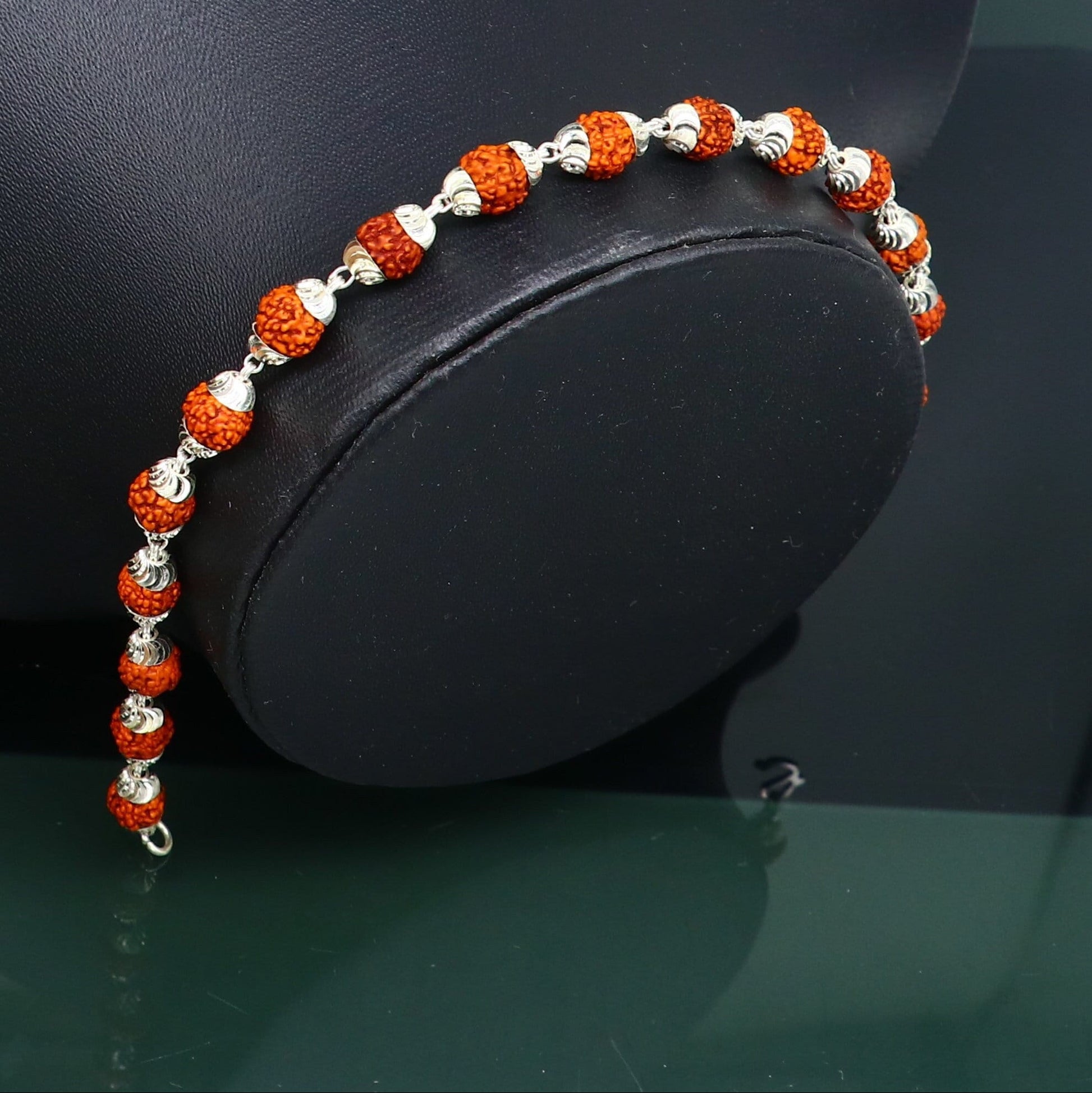 Solid silver handmade 6 mm Natural Rudraksha beads stunning divine bracelet jewelry from Rajasthan India nsbr298