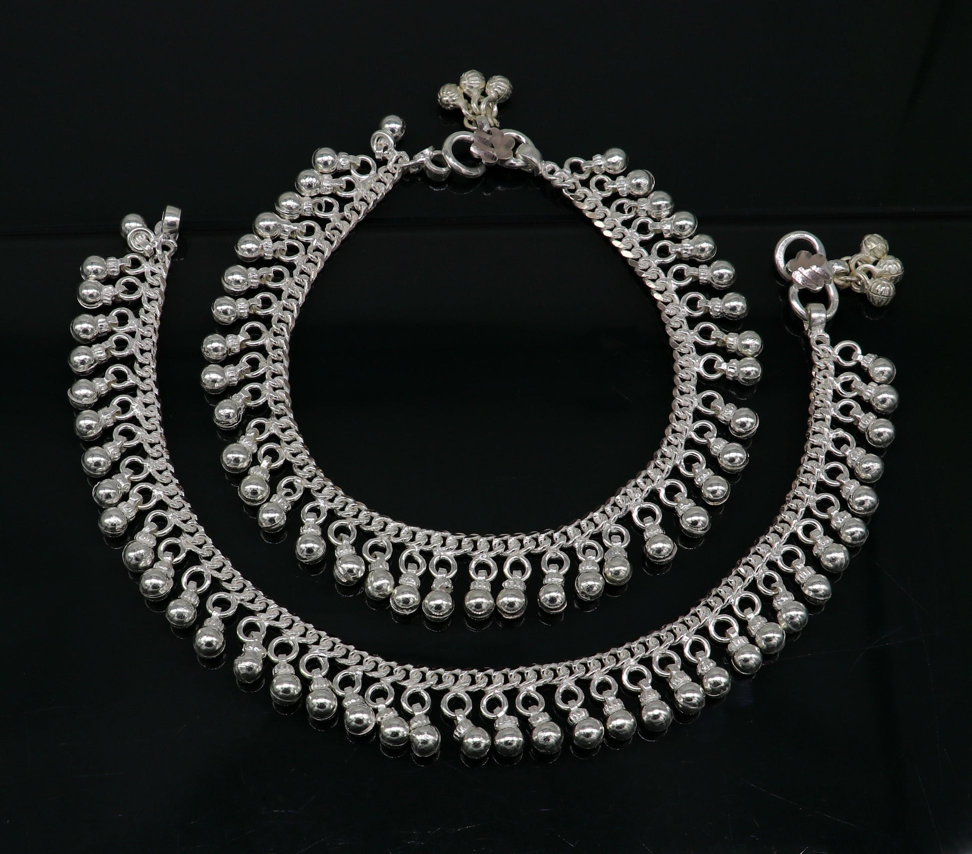 Solid sterling silver customized waved jingling bells anklets, gorgeous tribal belly dance elegant anklets foot bracelet noisy anklet ank329