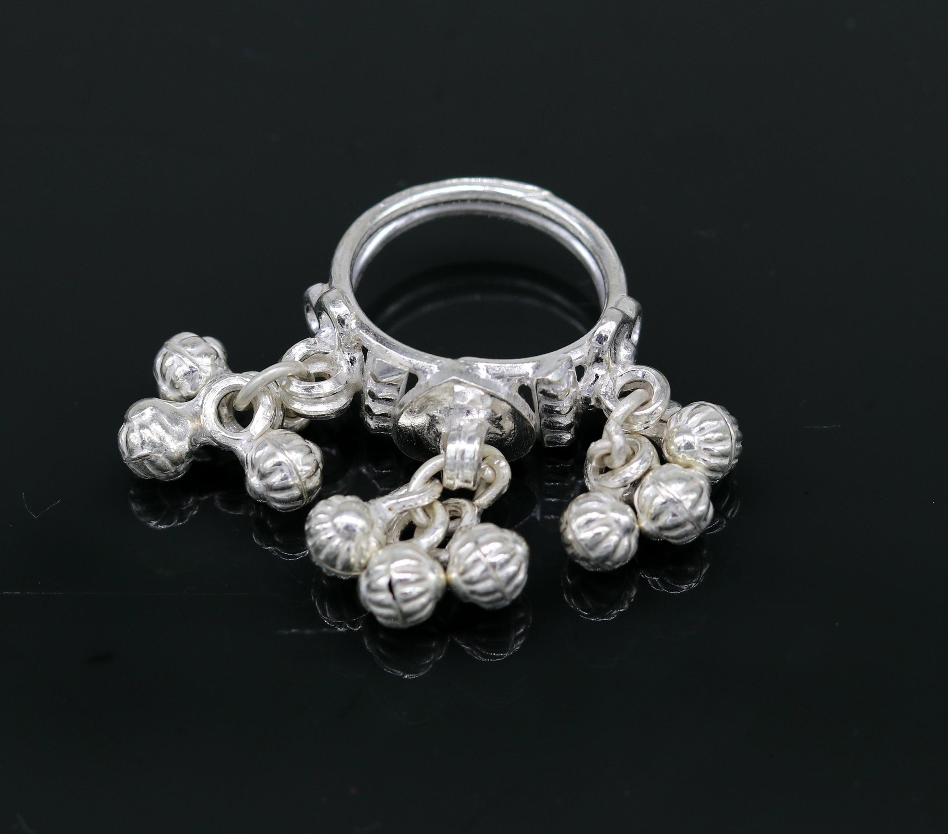 Vintage Design Indian traditional style handmade sterling silver customized charm ring, we can use as thumb ring according to size, pretty hanging noisy bell, personalized bridesmaid ring tribal belly dance jewelry.