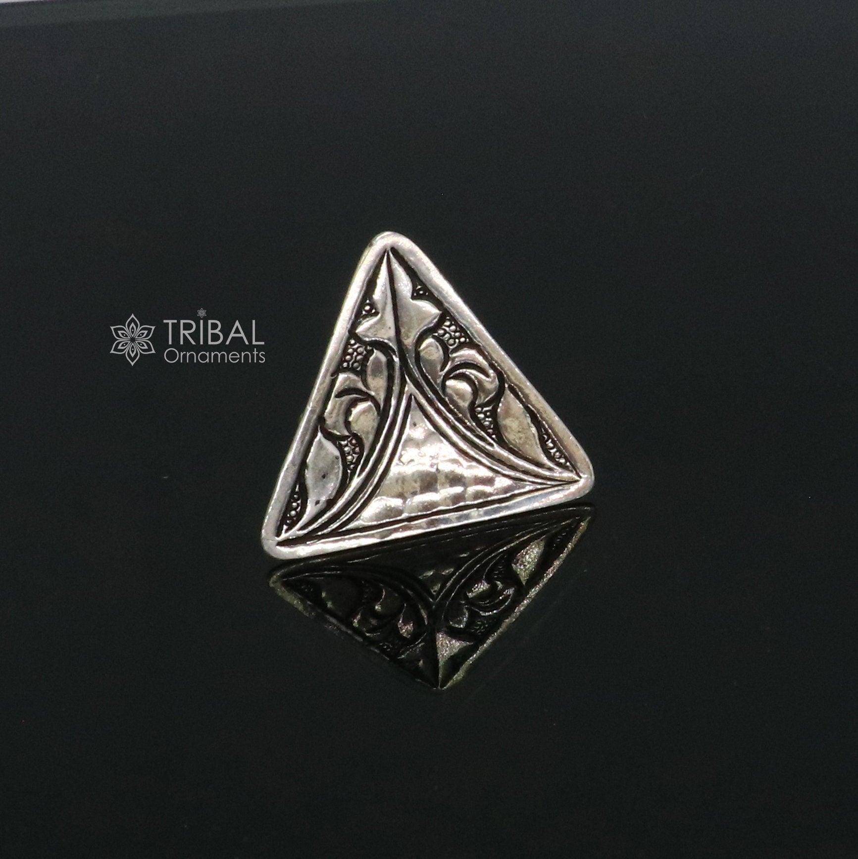 Triangle shape Traditional cultural design 925 sterling silver adjustable ring, best tribal ethnic jewelry Navratri dance jewelry sr388