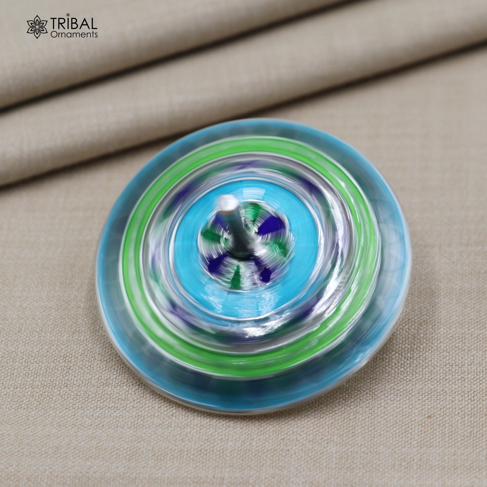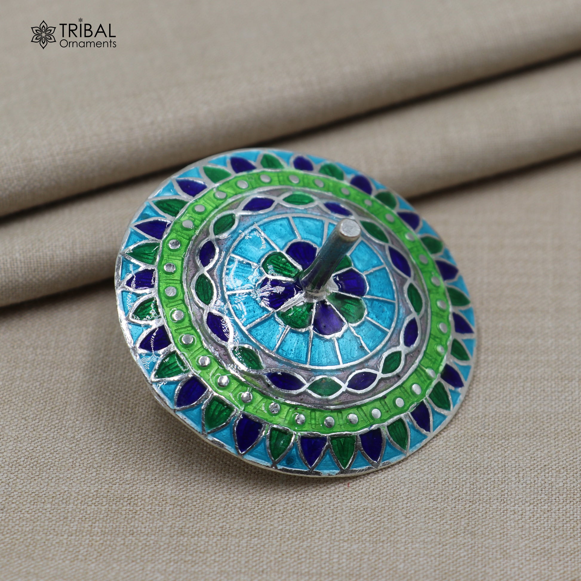 925 sterling silver mandala meenakari design Firki or Lattu toy silver toy for your baby Krishna idols article art852