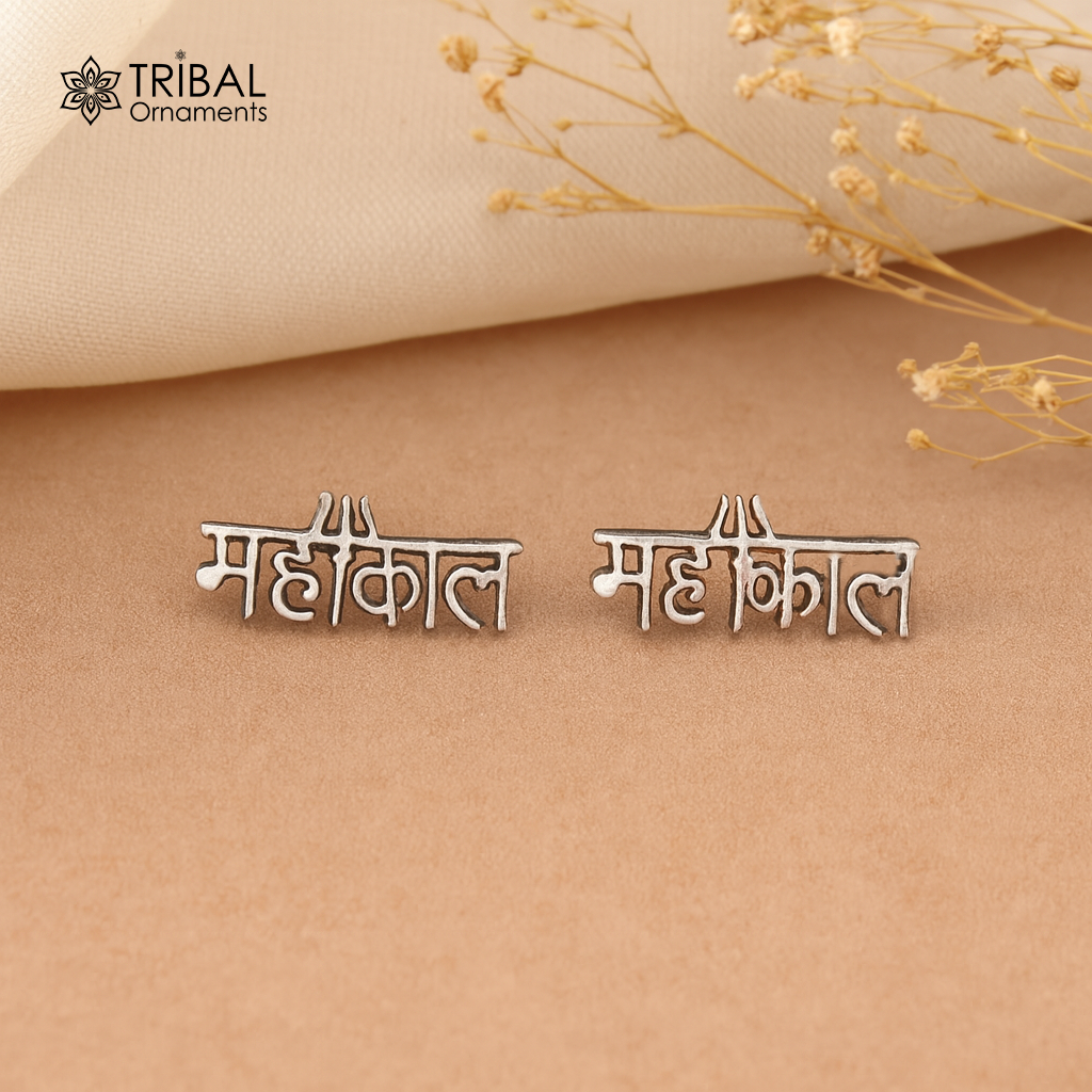 Vintage 925 sterling silver Hindu idol shiva mahakal fancy men's stud pair earrings s-25
