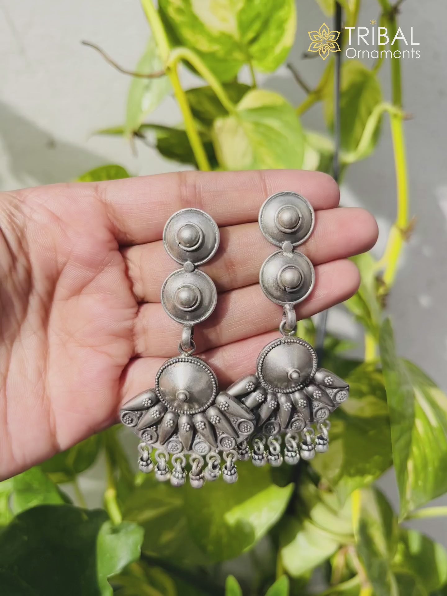 vintage antique design 925 sterling silver drop dangle chandelier long earrings tribal stylish belly dance jewelry from india s680