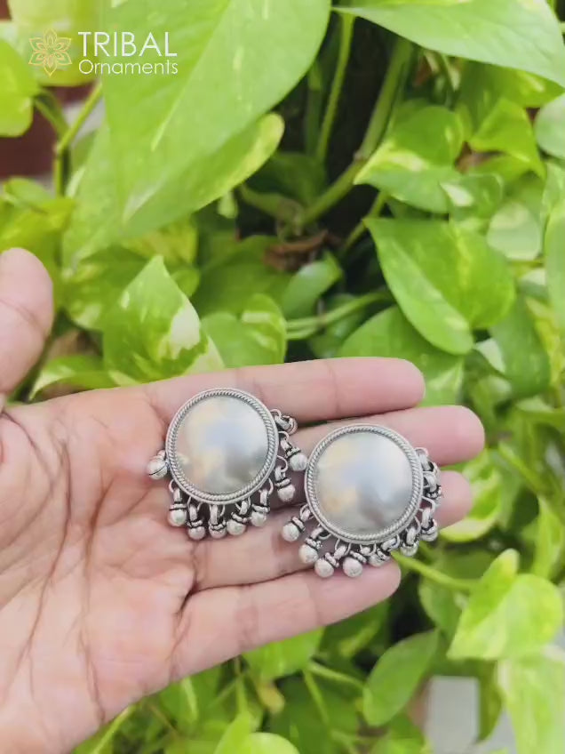 925 sterling silver plain round design Stud earrings tribal jewelry s1048