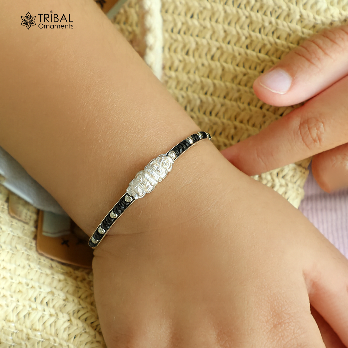 Vintage style handmade crocodile face sterling silver bangle bracelet silver beads customized evil eye nazariya tribal kids jewelry bbk87
