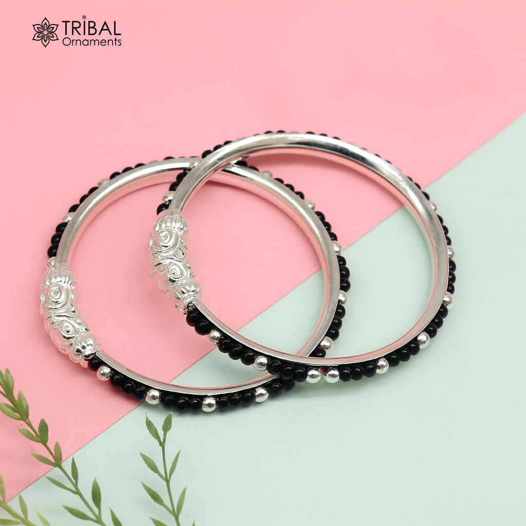 Vintage style handmade Elephant face sterling silver bangle bracelet silver beads customized evil eye nazariya tribal kids jewelry nbbk228
